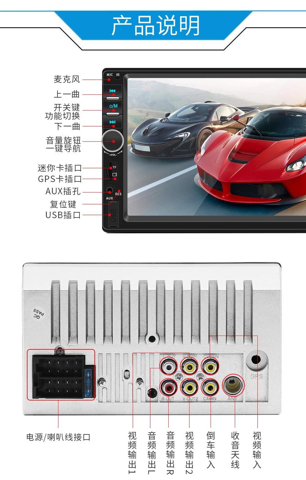 7012b coche doble lingote 7 pulgadas reproductor de tarjetas multimedia MP5 MP4 radio llamada bluetooth interconexión teléfono móvil