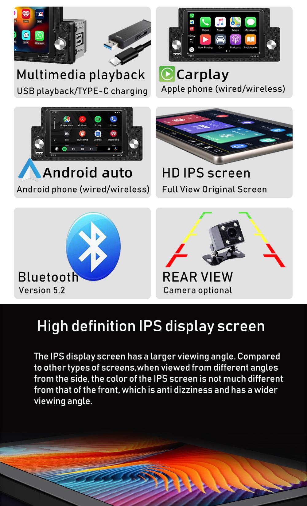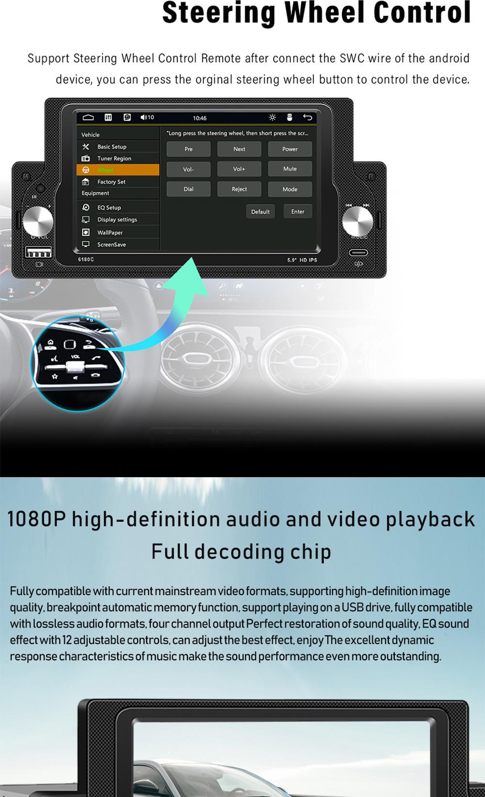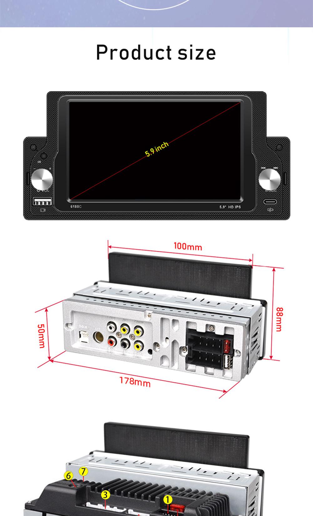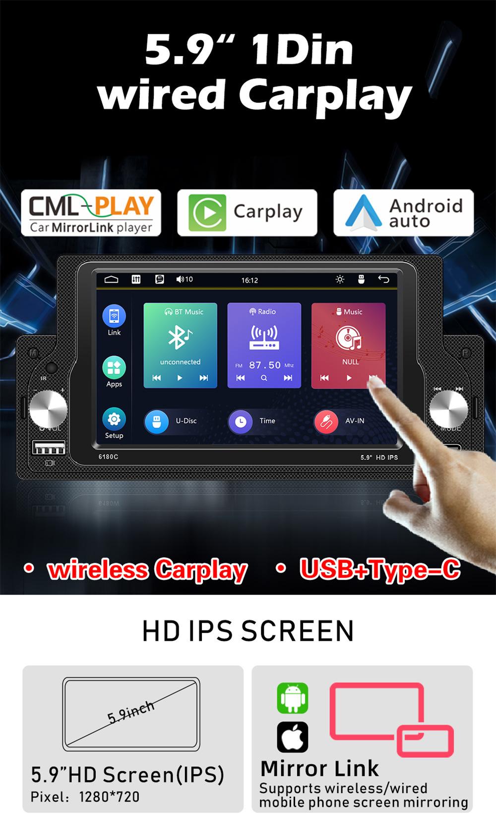 Reproductor MP5 para coche con sistema de navegación GPS y Bluetooth para coche, Android, universal, transfronterizo, de 5,9 pulgadas