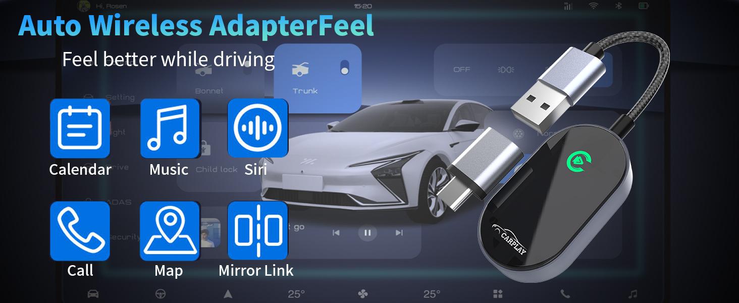 Caja CarPlay inalámbrica interconexión de navegación para coche con cable a inalámbrico compatible con CarPlay/ Android