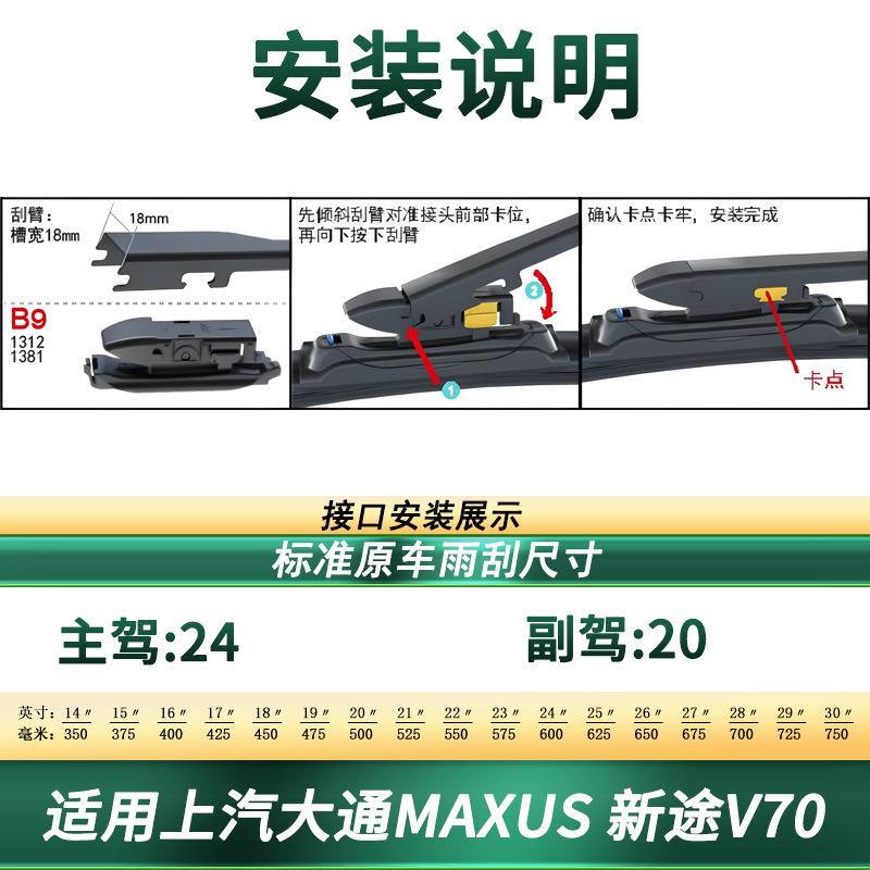 Aplicable a limpiaparabrisas de coche SAIC Datong MAXUS/Xintu V70 limpiaparabrisas multifuncional sin esqueleto con tira de goma silenciosa