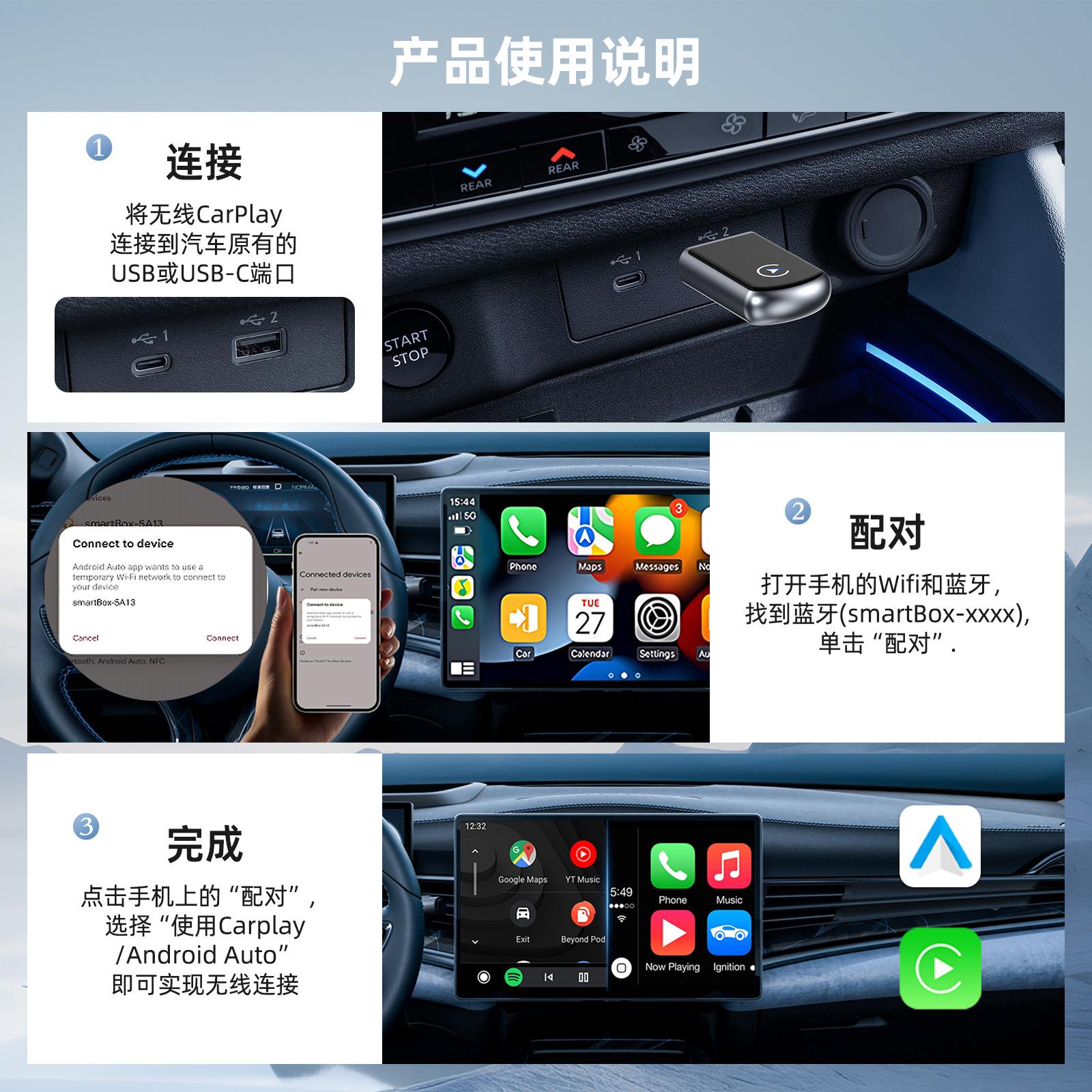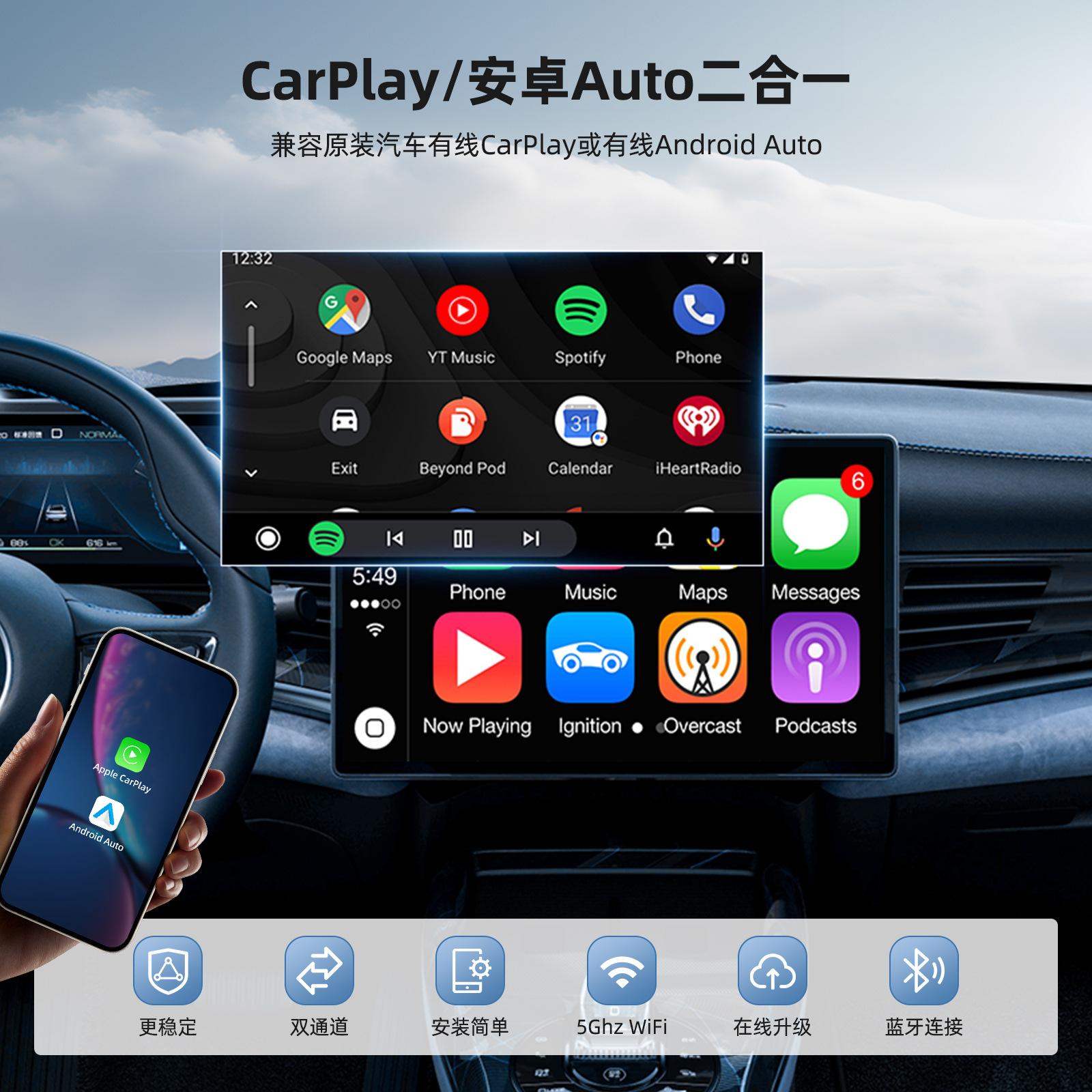 Carplay Caja cableada a inalámbrica Apple Android Auto 2 en 1 Navegación para coche Máquina para coche Caja conectada