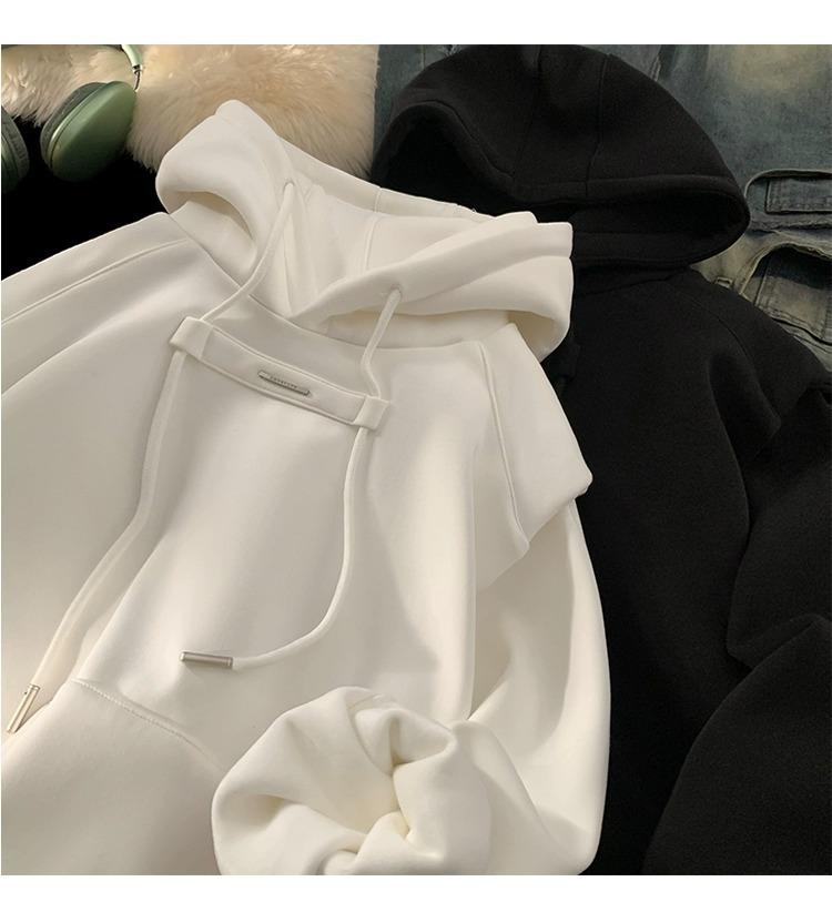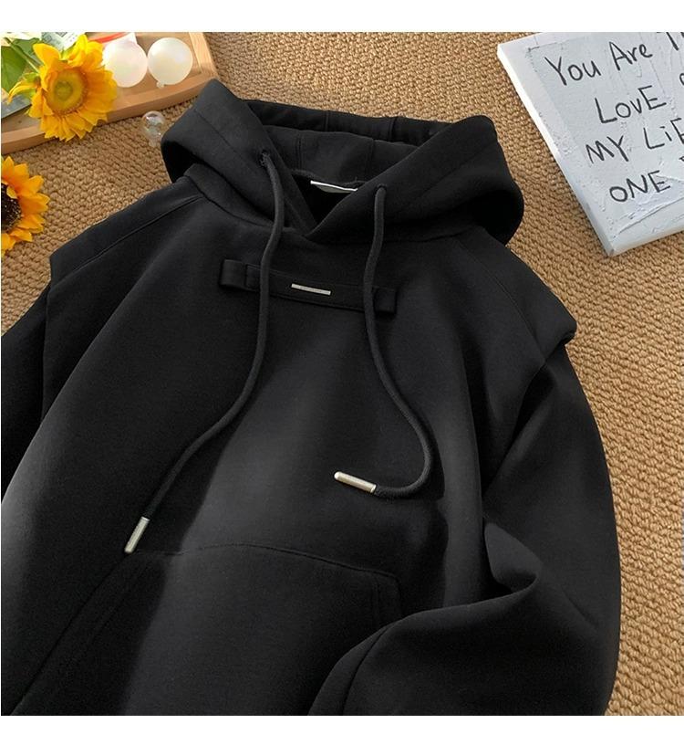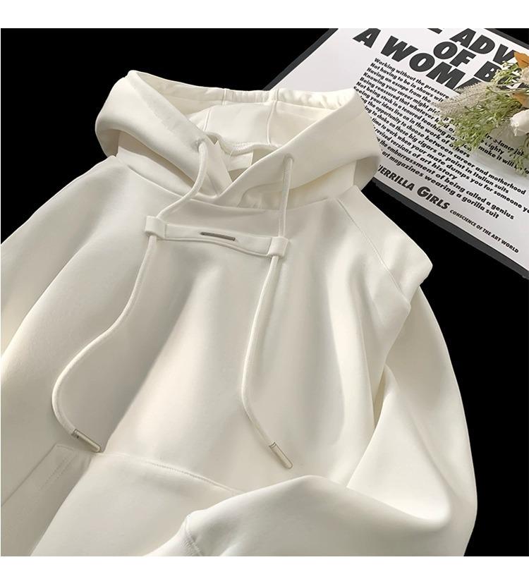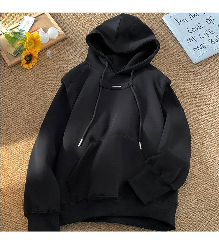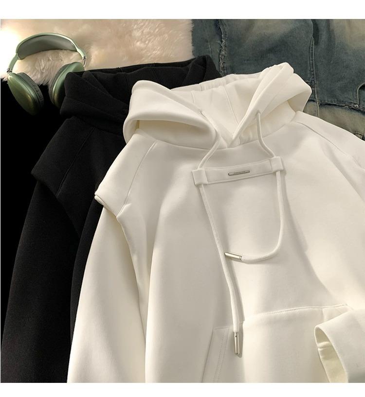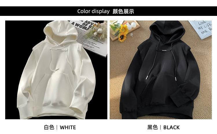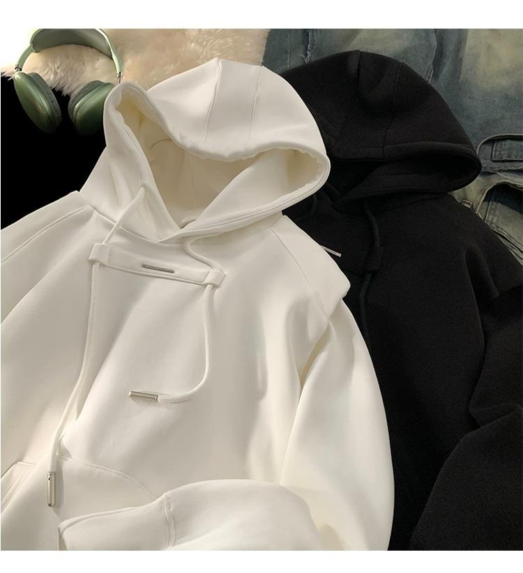 Sudadera falsa de dos piezas blanca pura para hombre, primavera y otoño, nueva marca de moda, diseño con sentido del estilo americano, ropa informal holgada con capucha.