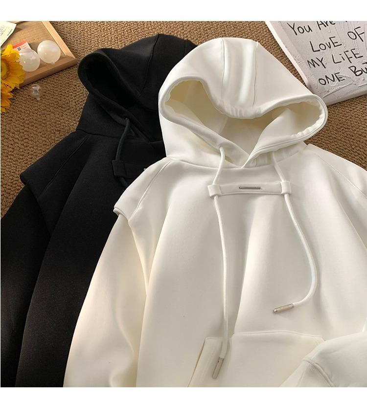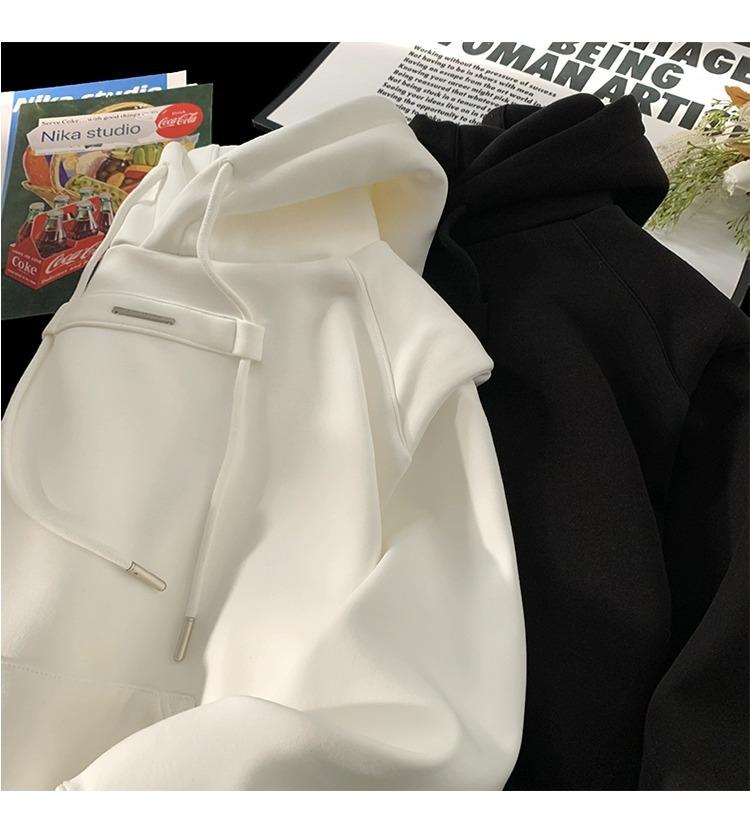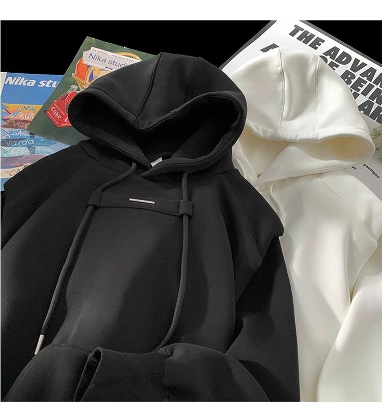 Suéter con capucha para hombre, otoño e invierno 2023, color liso, estilo Hong Kong, ropa de estudiante, tops