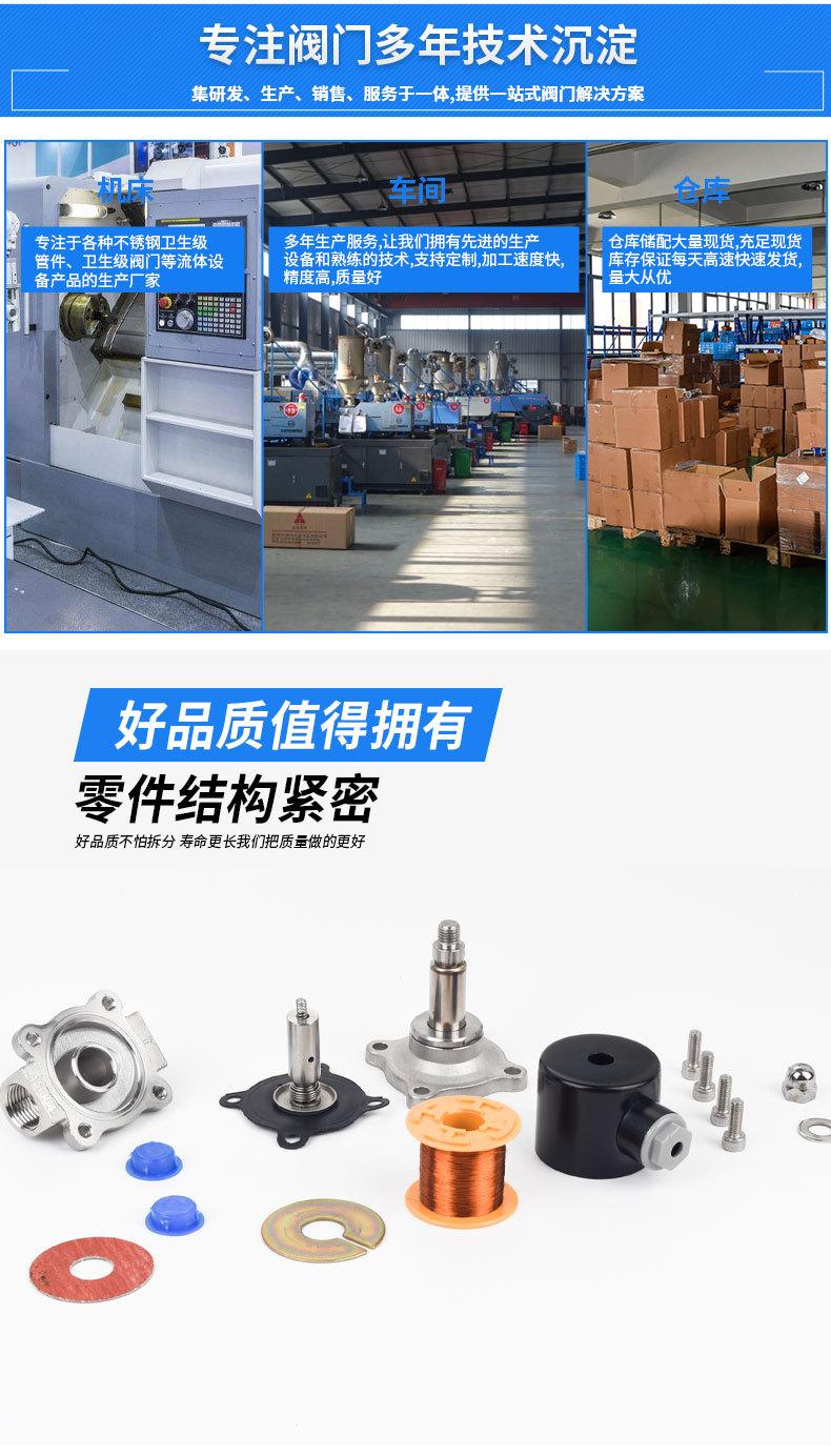 Bobina de electroválvula de acero inoxidable sanitario válvula de agua grado alimenticio normalmente cerrada pulido control Chuck 220V24 válvula de retención