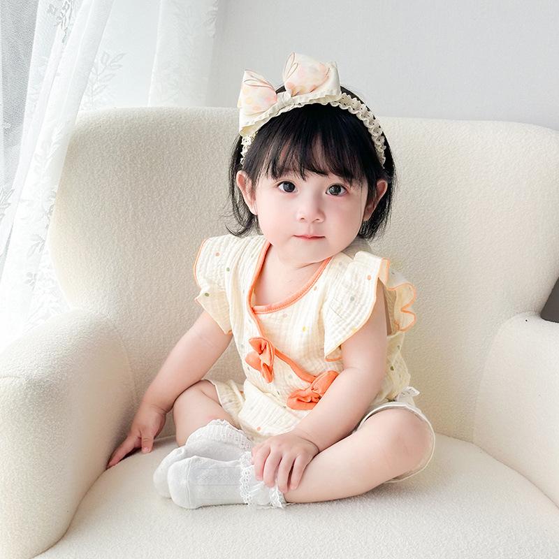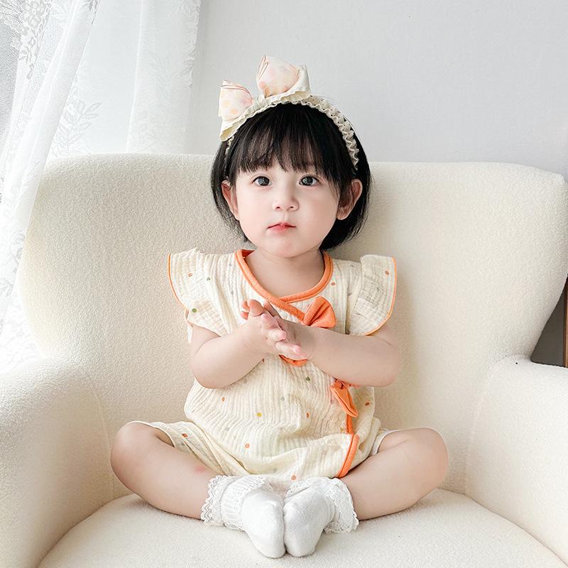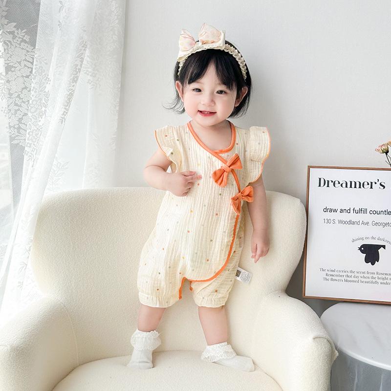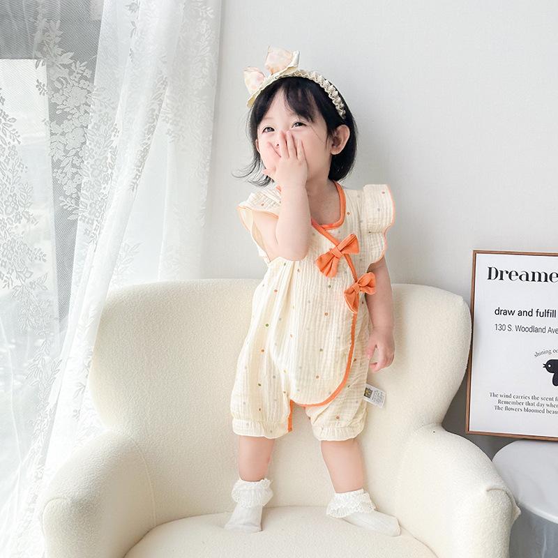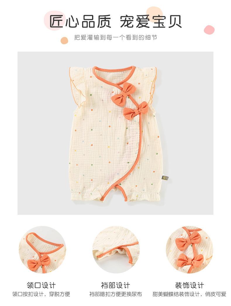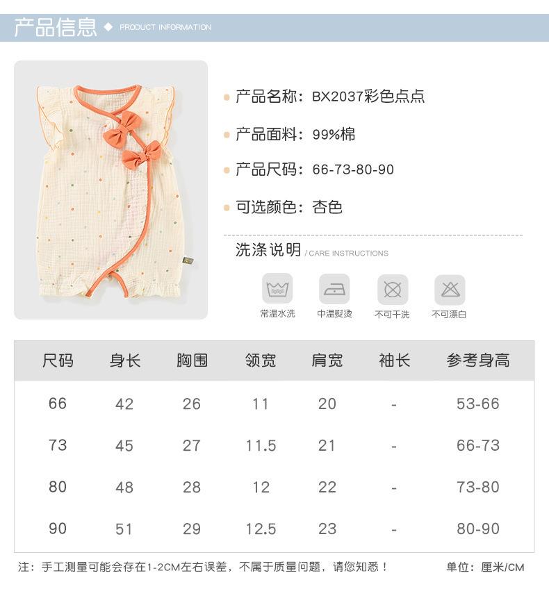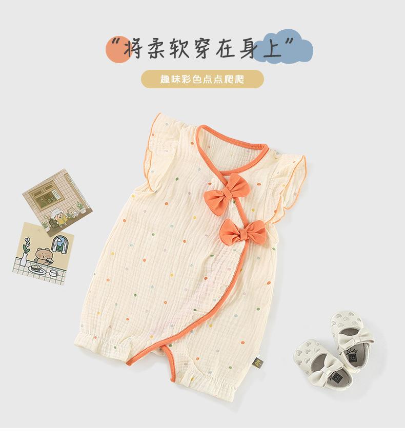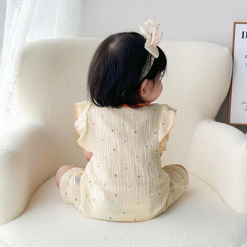Ropa de Bebé Verano Manga Corta Lunares Coloridos Cárdigan Inclinado Ropa de Bebé Niña Mameluco de Bebé Ropa de Recién Nacido