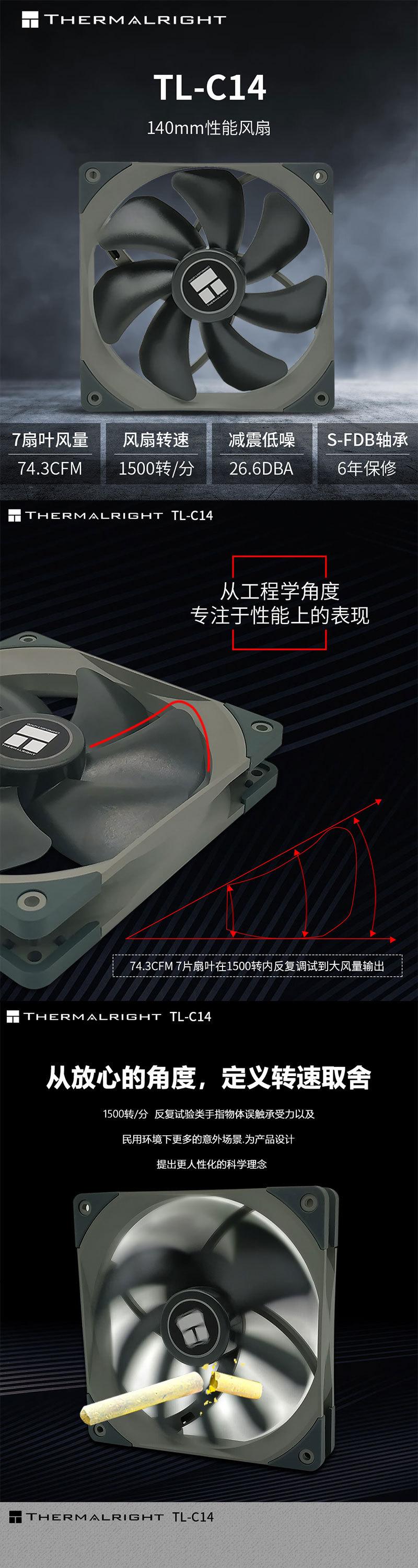 Radiador refrigerado por aire Thermalright Limin TL-C14, ventilador de chasis de 14 CM, 4 pines, PWM1500, giro