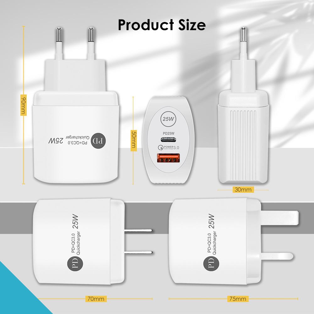 Cabezal de carga rápida PD 25w cargador cabezal U C regulaciones europeas y americanas británicas aplica a cabezal de cargador de teléfono móvil Apple Huawei