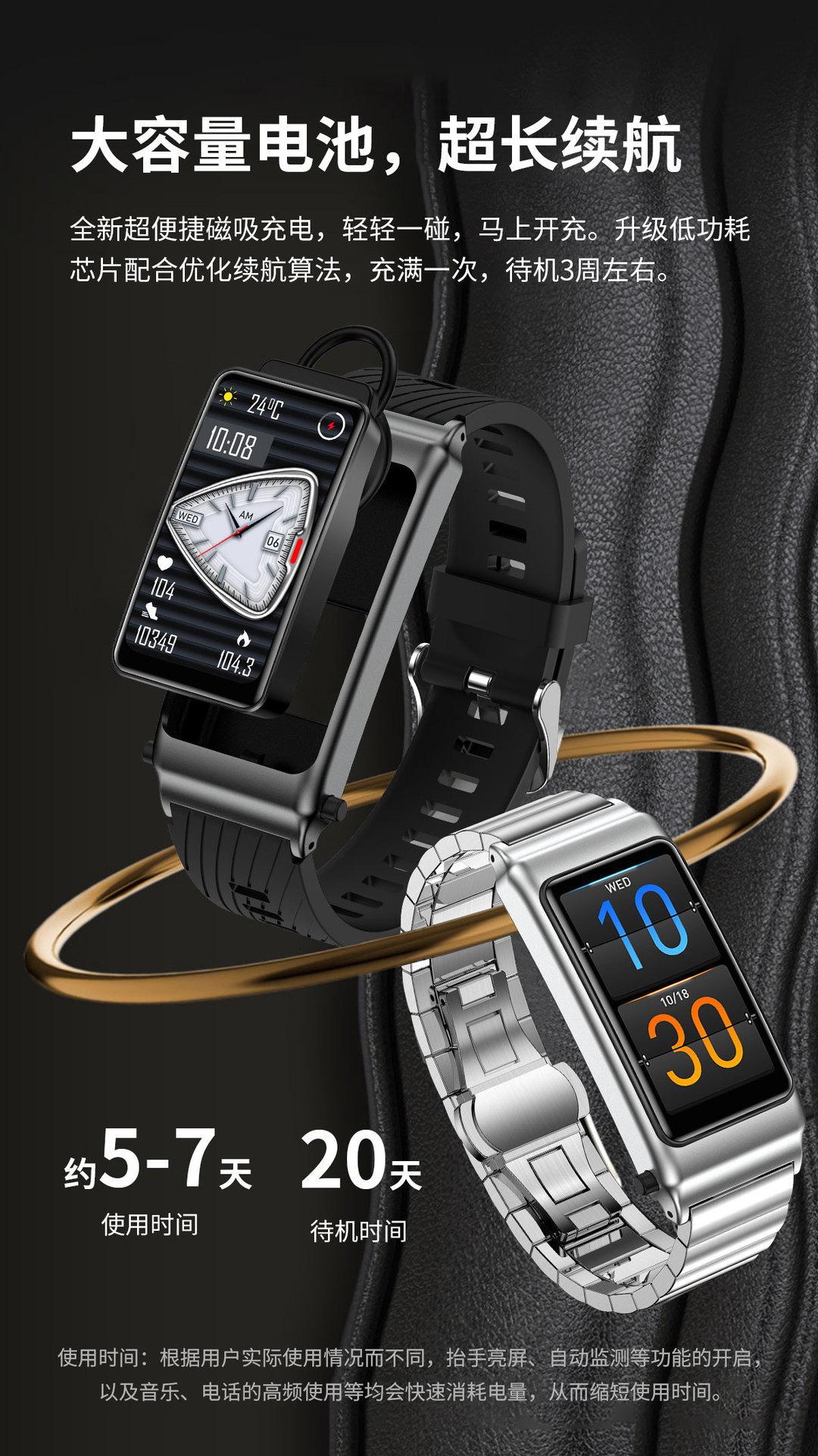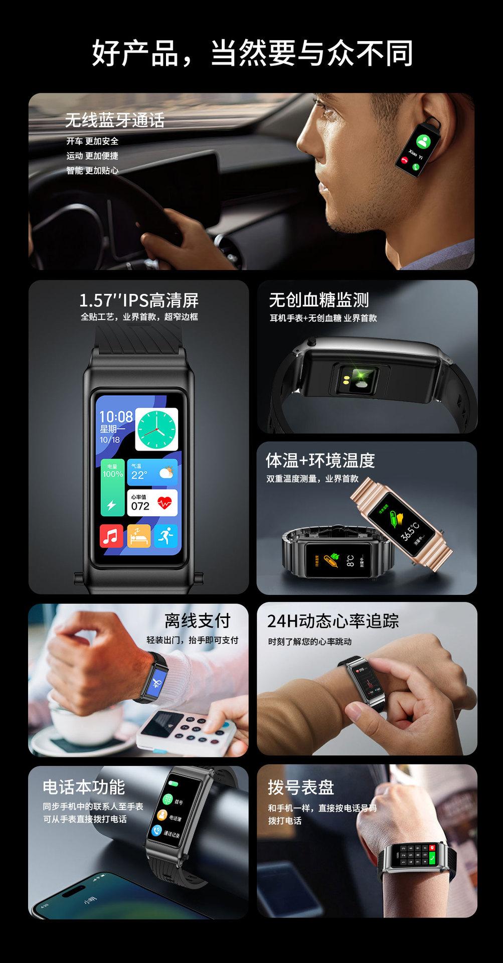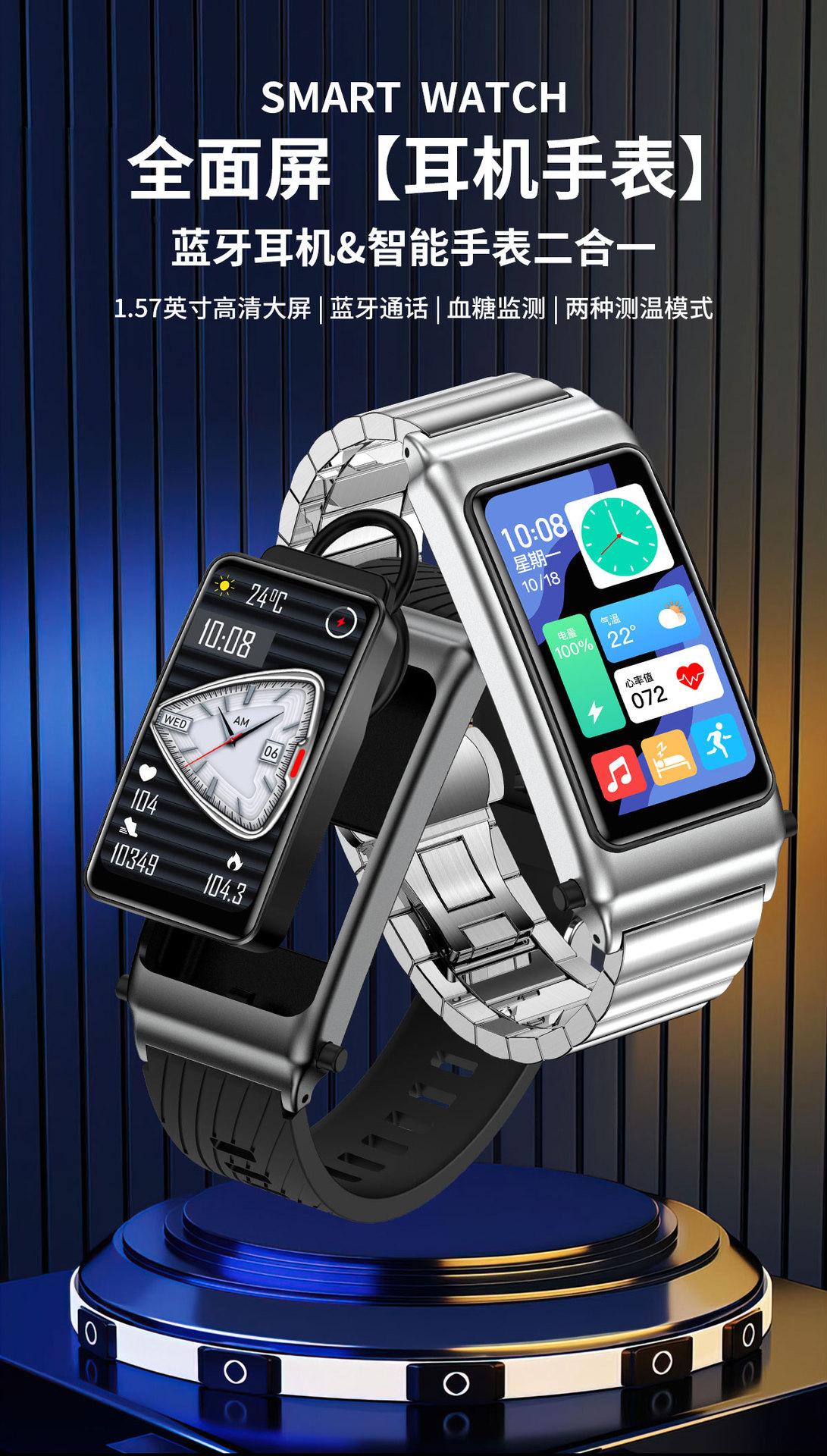 Pulsera Inteligente K80 Auriculares Bluetooth Dos en Uno Azúcar en Sangre Llamada Pago Control de Acceso NFC B7 Comercio Exterior Reloj ECG Hombres