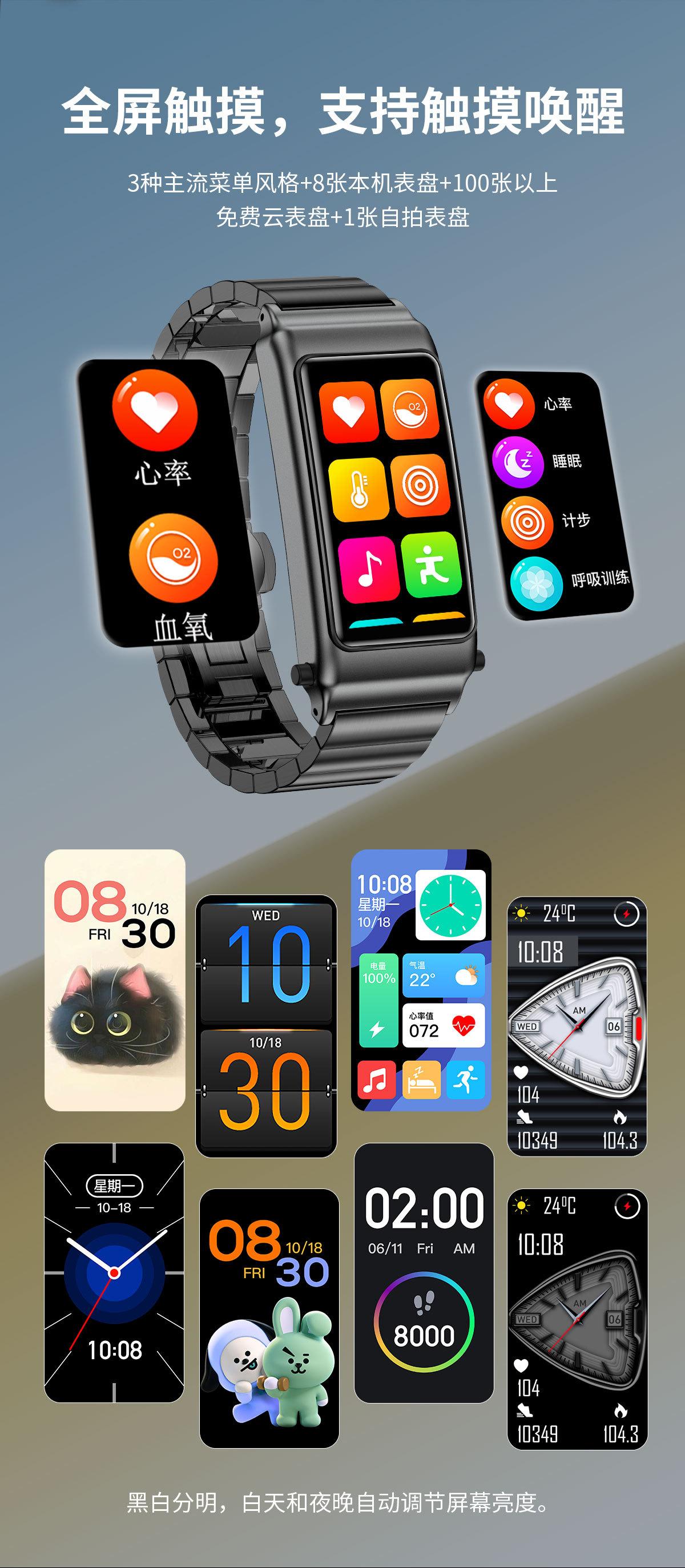 Waterproof, Step counting, Heart rate monitoring, Nfc function, Smart reminder, Remote control selfie, Sleep m...