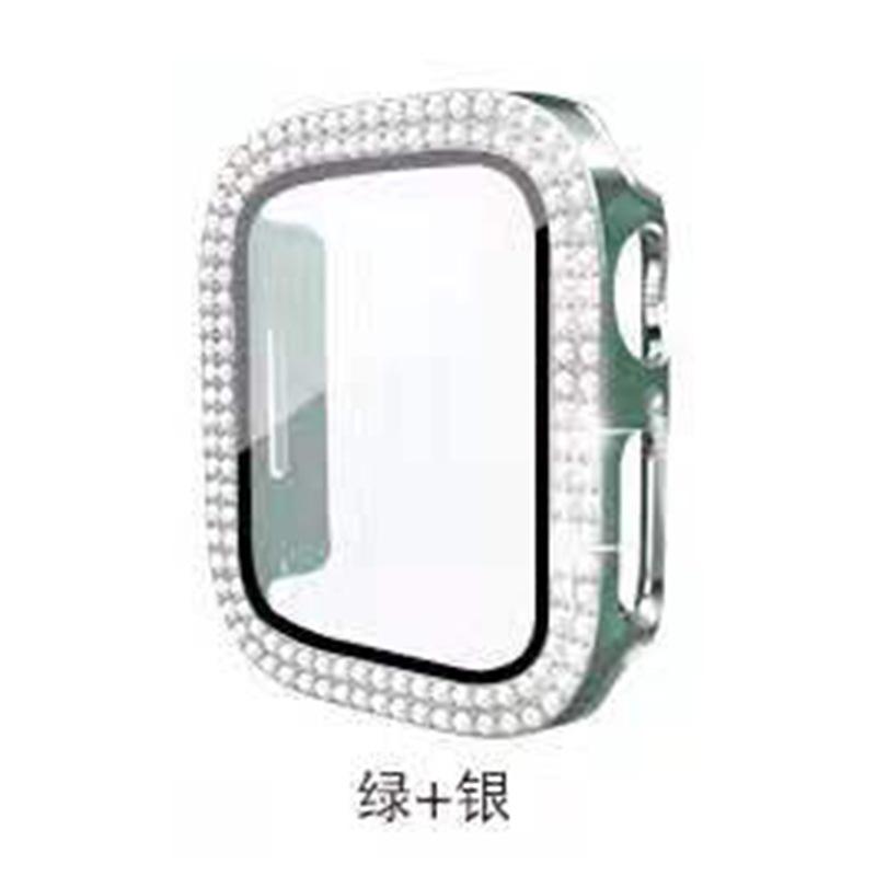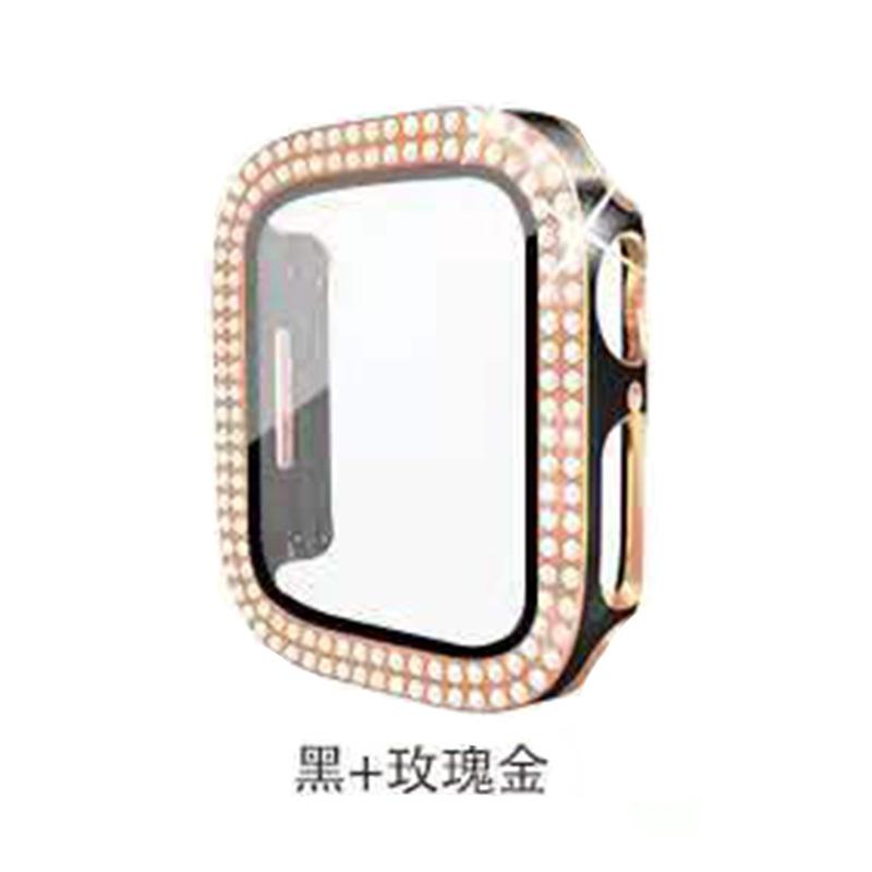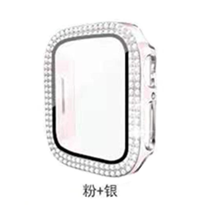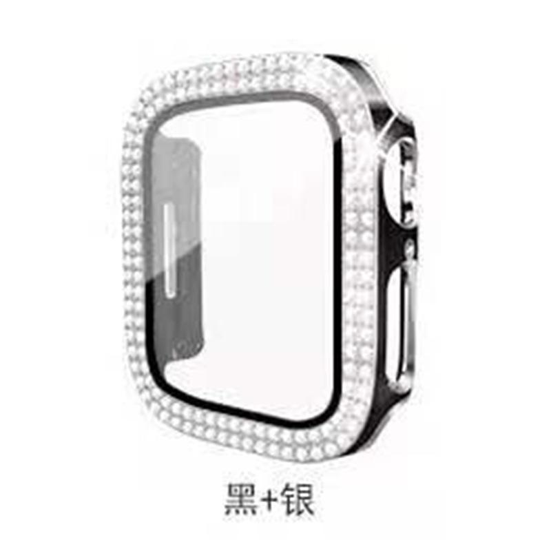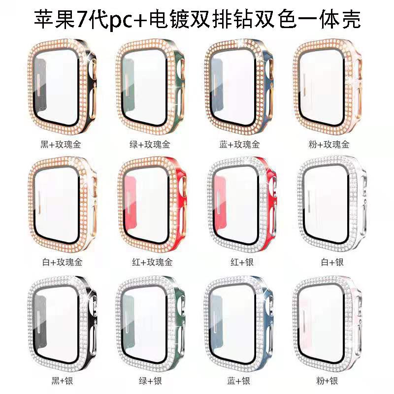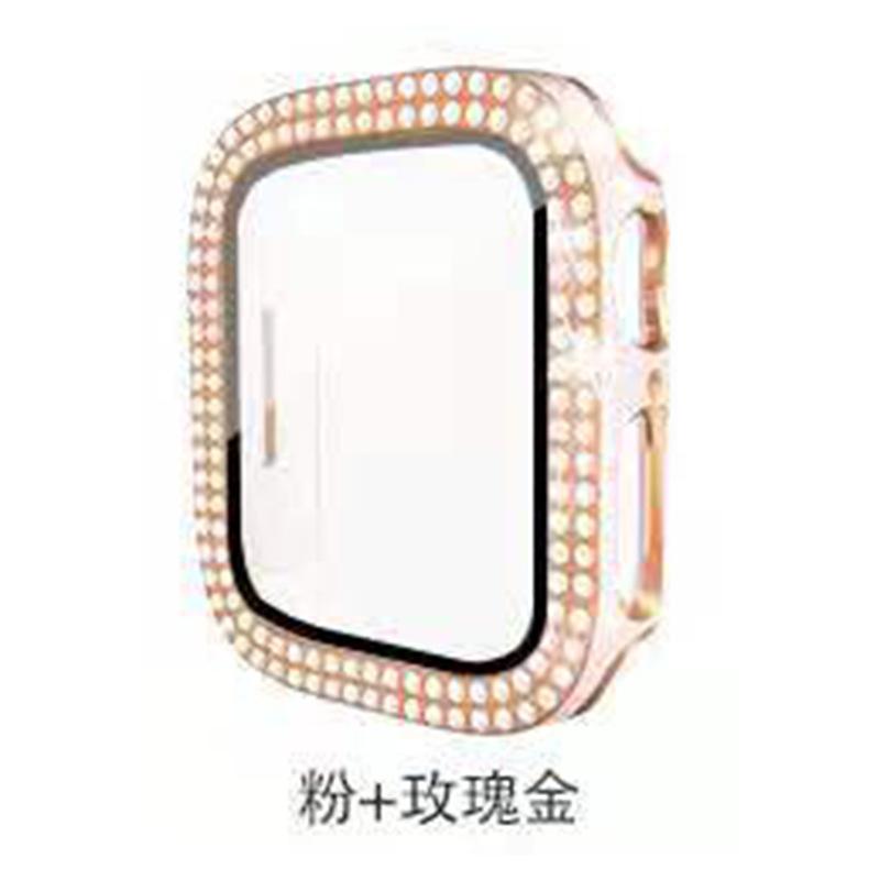Adecuado para Apple Watch, Apple iWatch, doble fila de diamantes, caja de Apple Watch, caja de reloj con película integrada, galvanoplastia