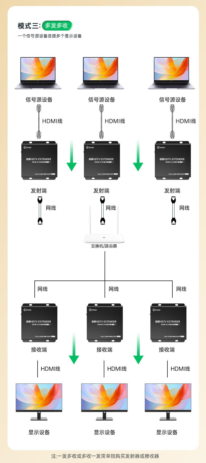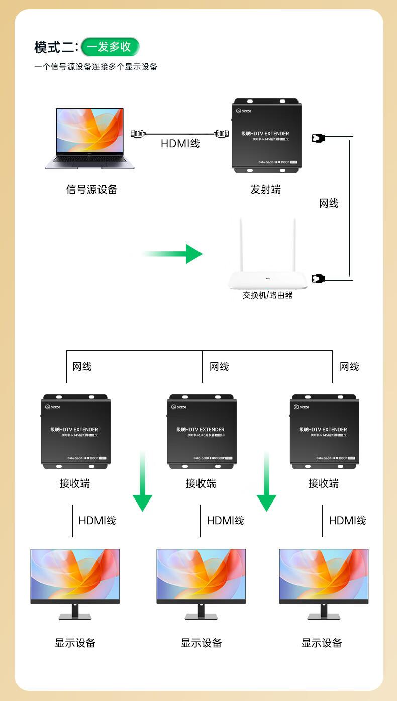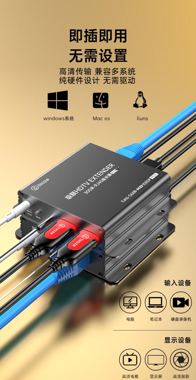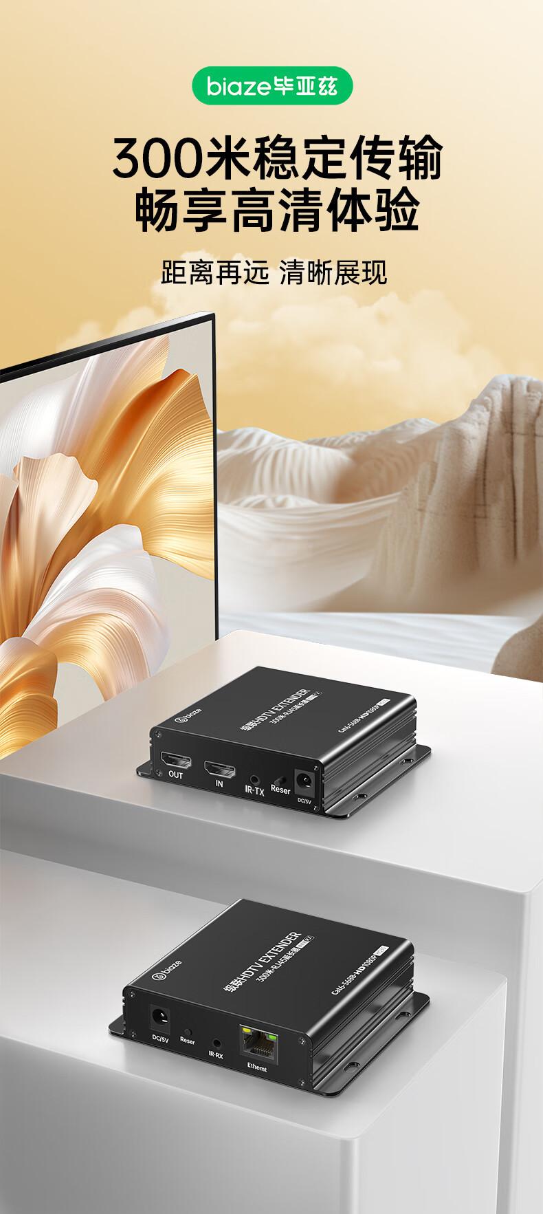 Extensor HDMI Biaz de 300 m, convertidor de puerto de red HDMI a RJ45, amplificador de señal, transmisor TX