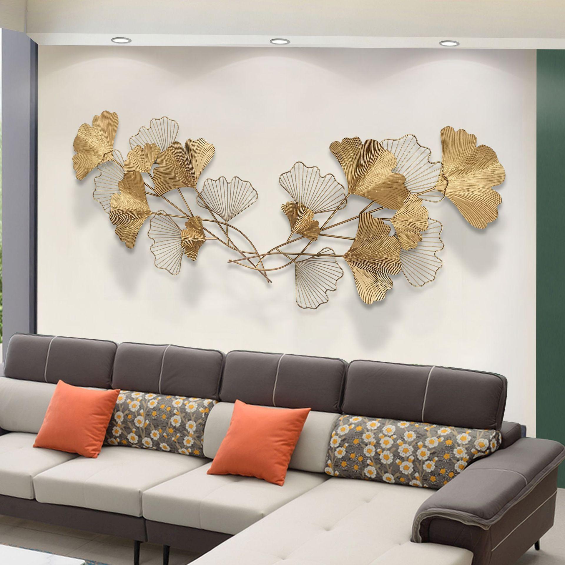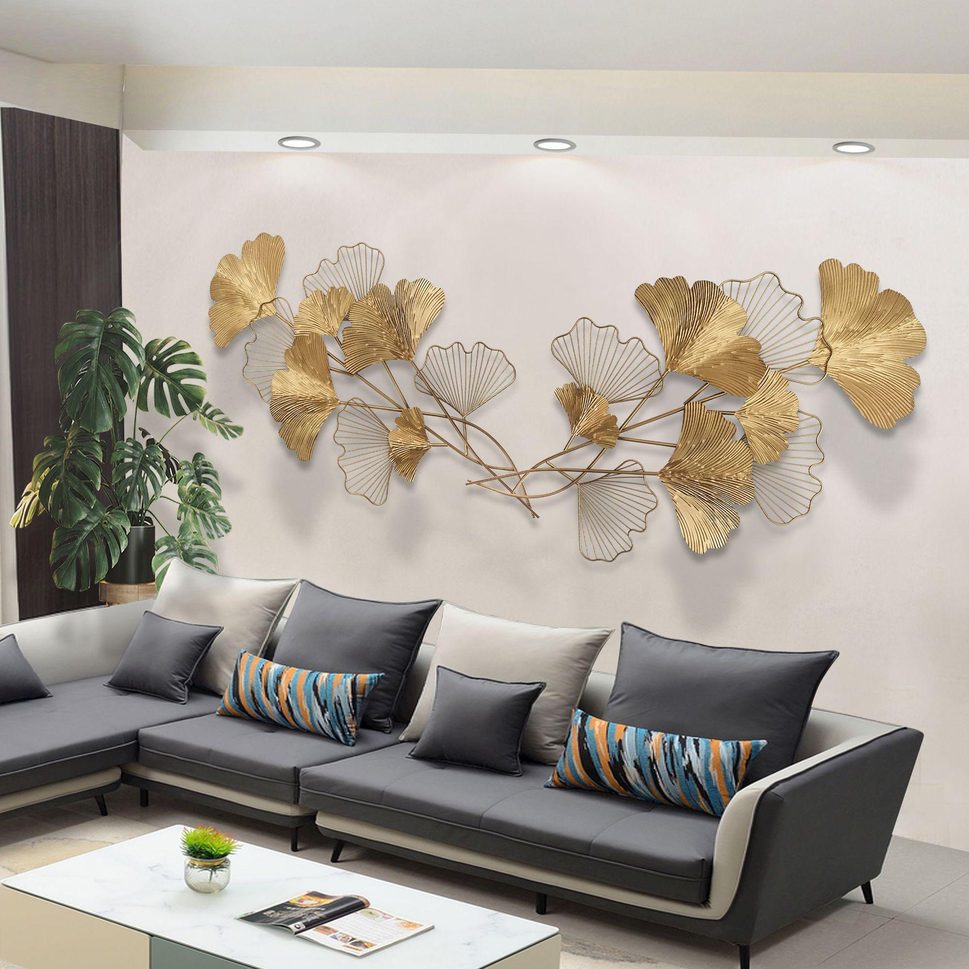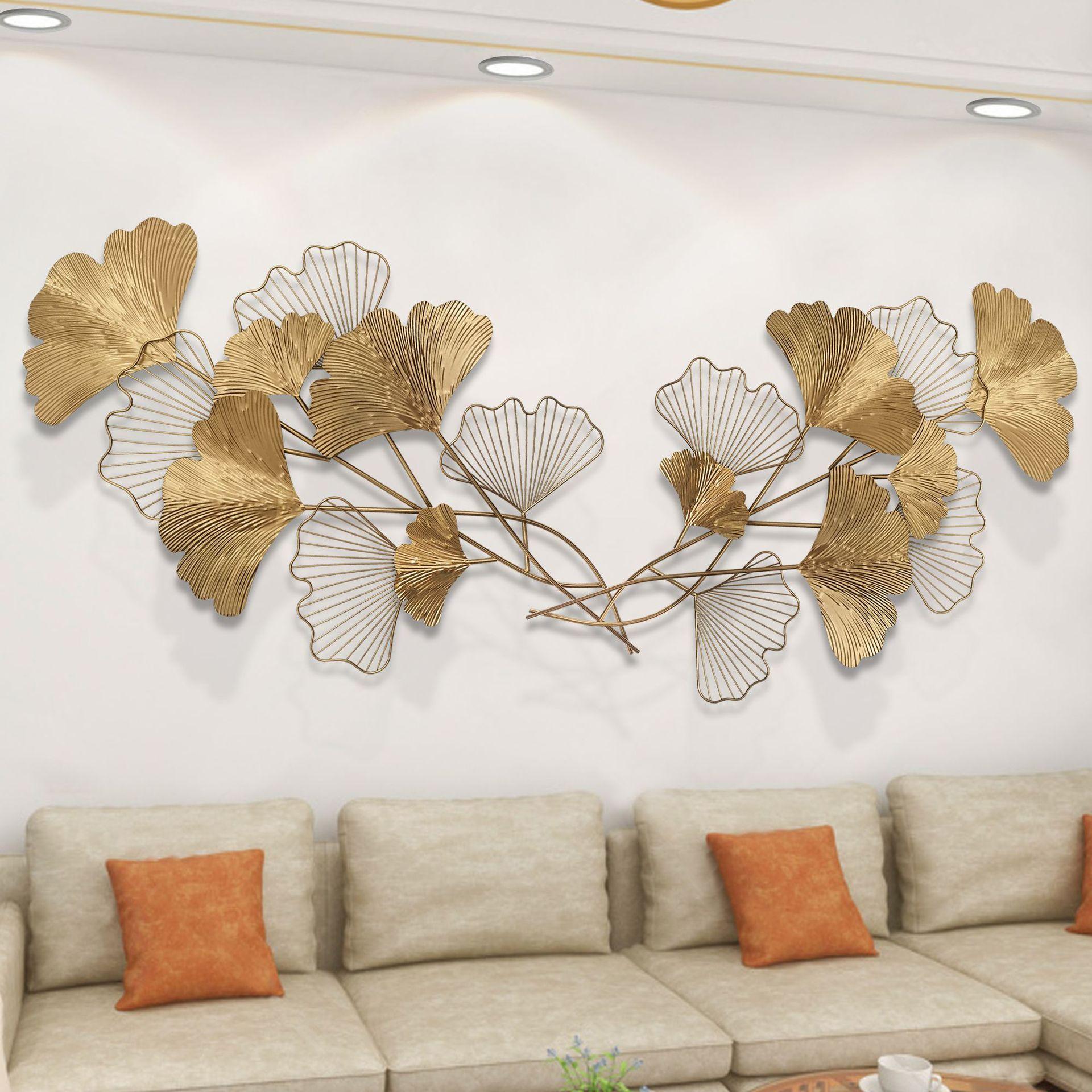 Nueva decoración de pared de hoja de ginkgo de metal y hierro para sala de estar de estilo chino, decoración de pared de salón de té, decoración de pared de fondo, decoración de pared redonda