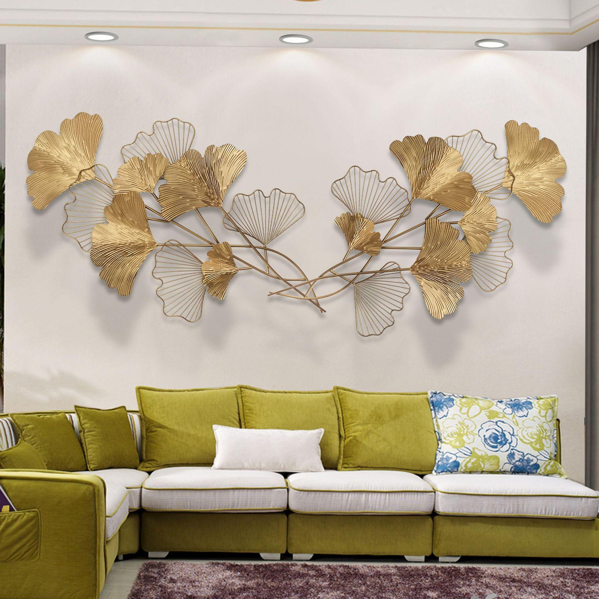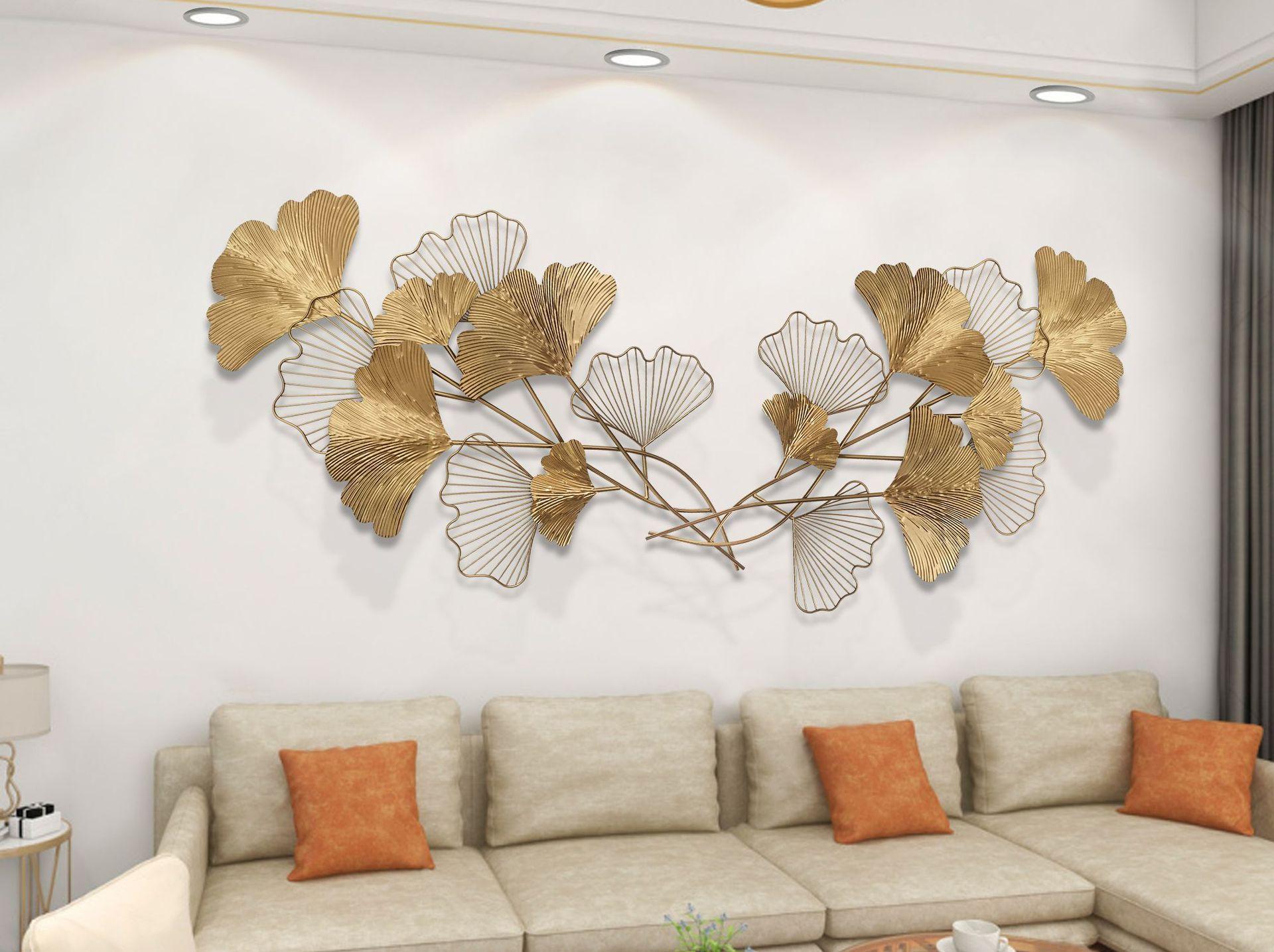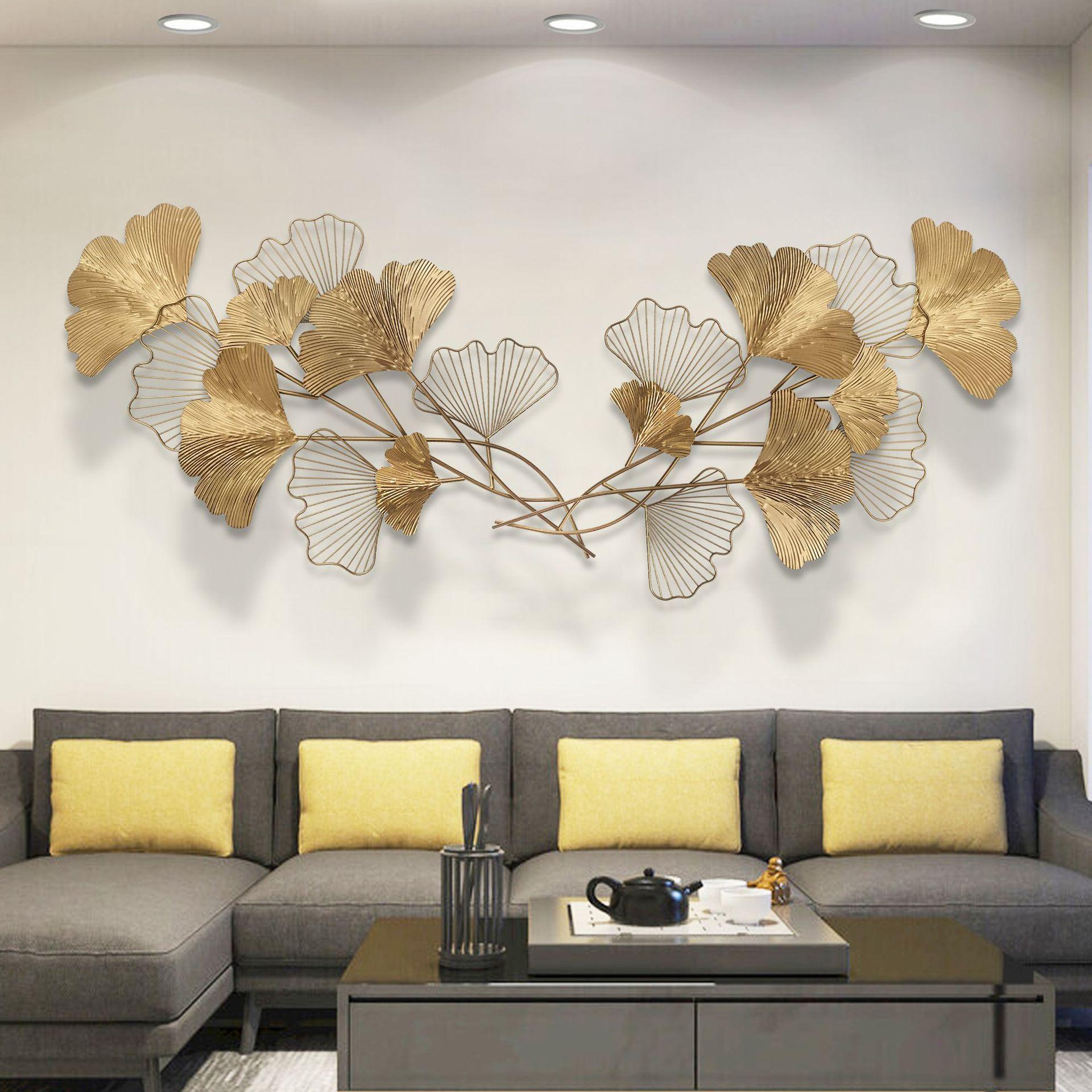 Nueva decoración de pared de hoja de ginkgo de metal y hierro para sala de estar de estilo chino, decoración de pared de salón de té, decoración de pared de fondo, decoración de pared redonda