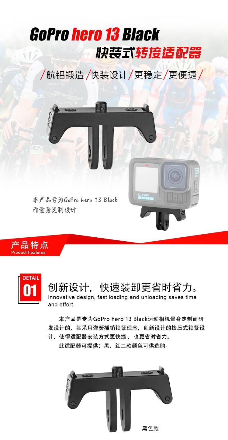Adecuado para GoPro13, base de liberación rápida de metal, accesorios adaptadores Hero13, cámara de movimiento, base de aleación de aluminio