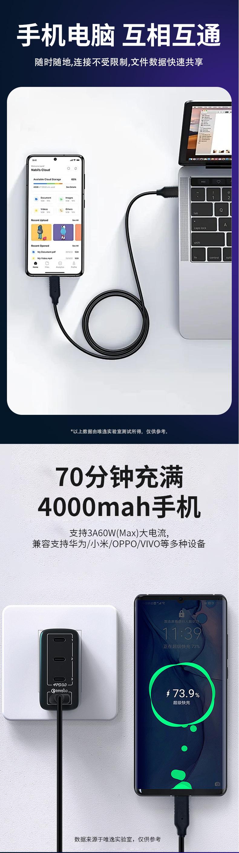 [USB3.2 to Type-C] 60W Fast Charge -10Gbps High Speed Transmission