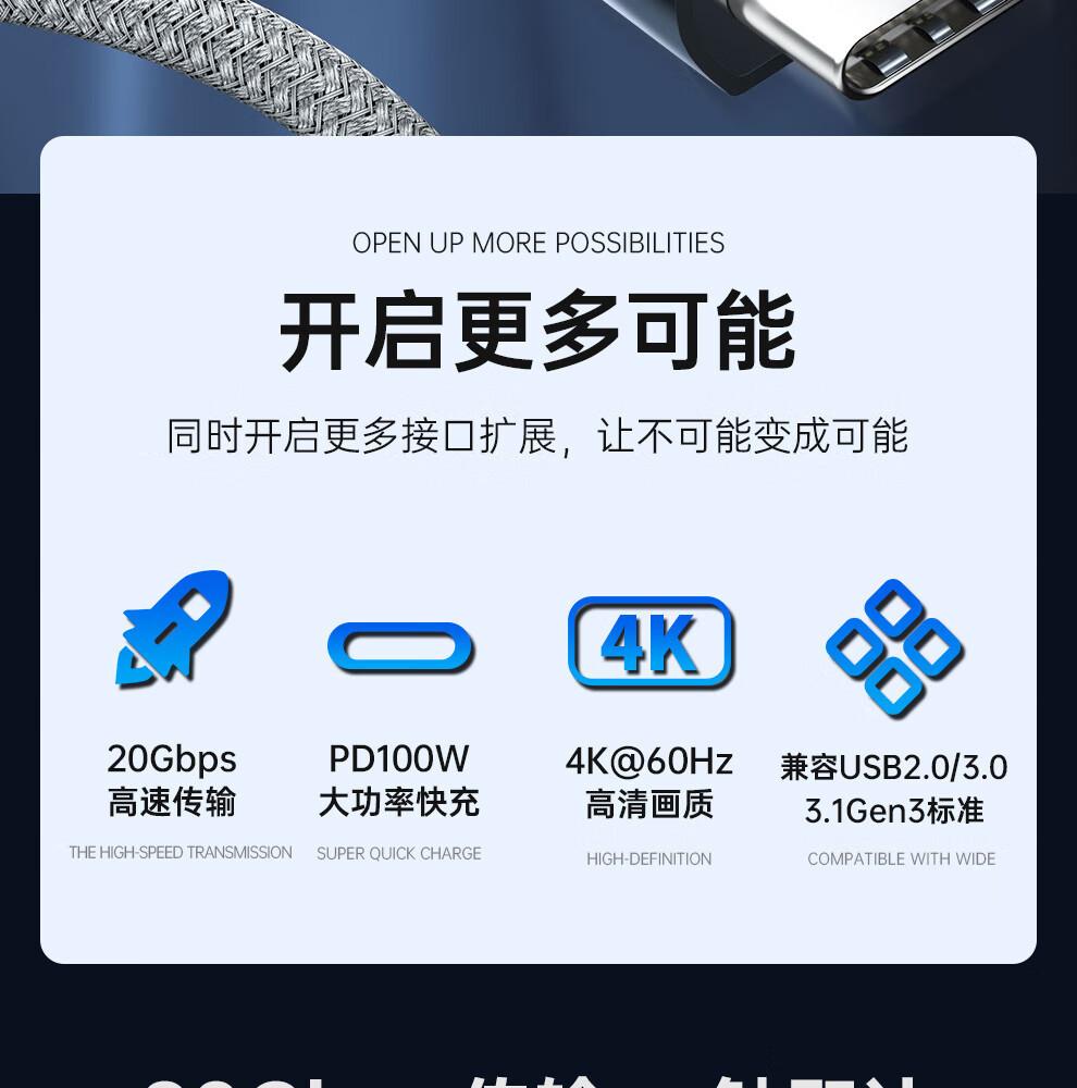 [USB3.2] 100WPD fast charge -20Gbps high-speed transmission -4K audio and video