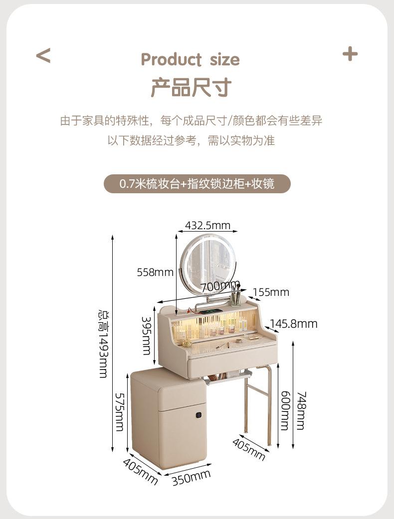 70cm dressing table + fingerprint locking cabinet + storage rack [slate countertop retractable]