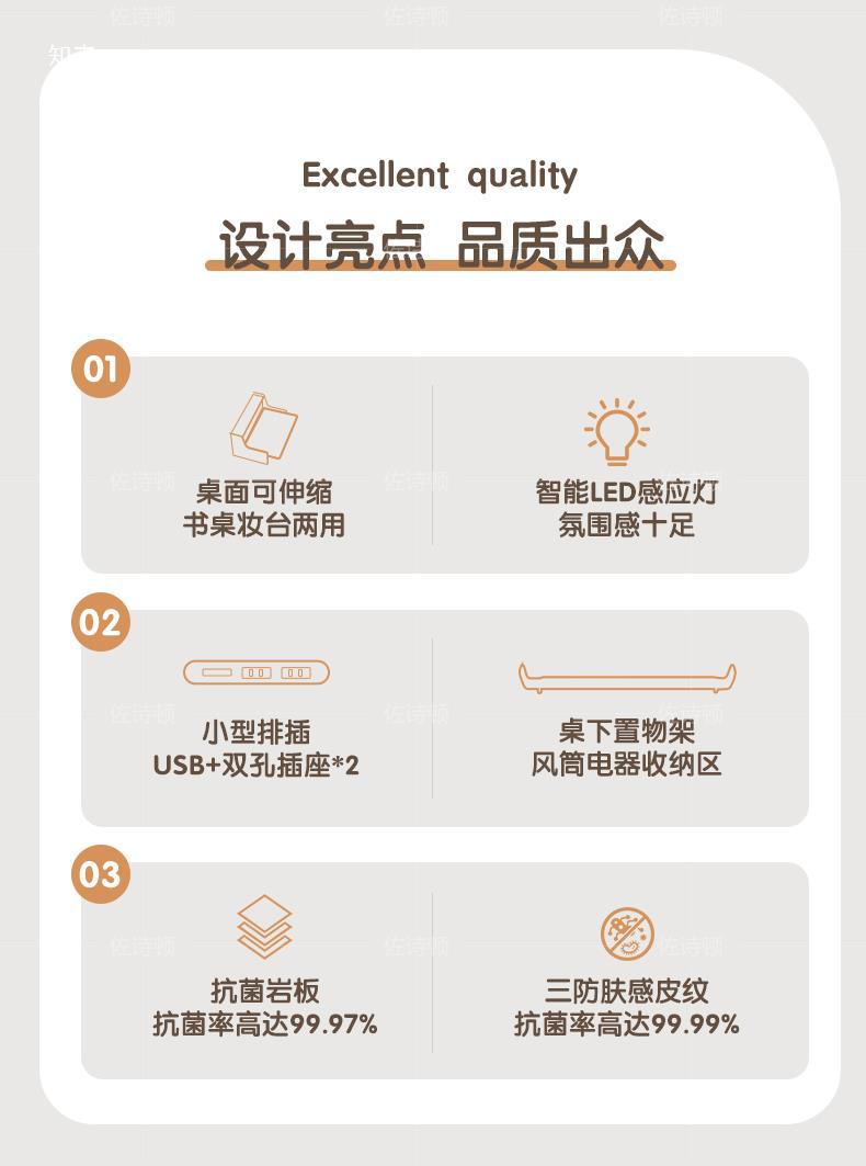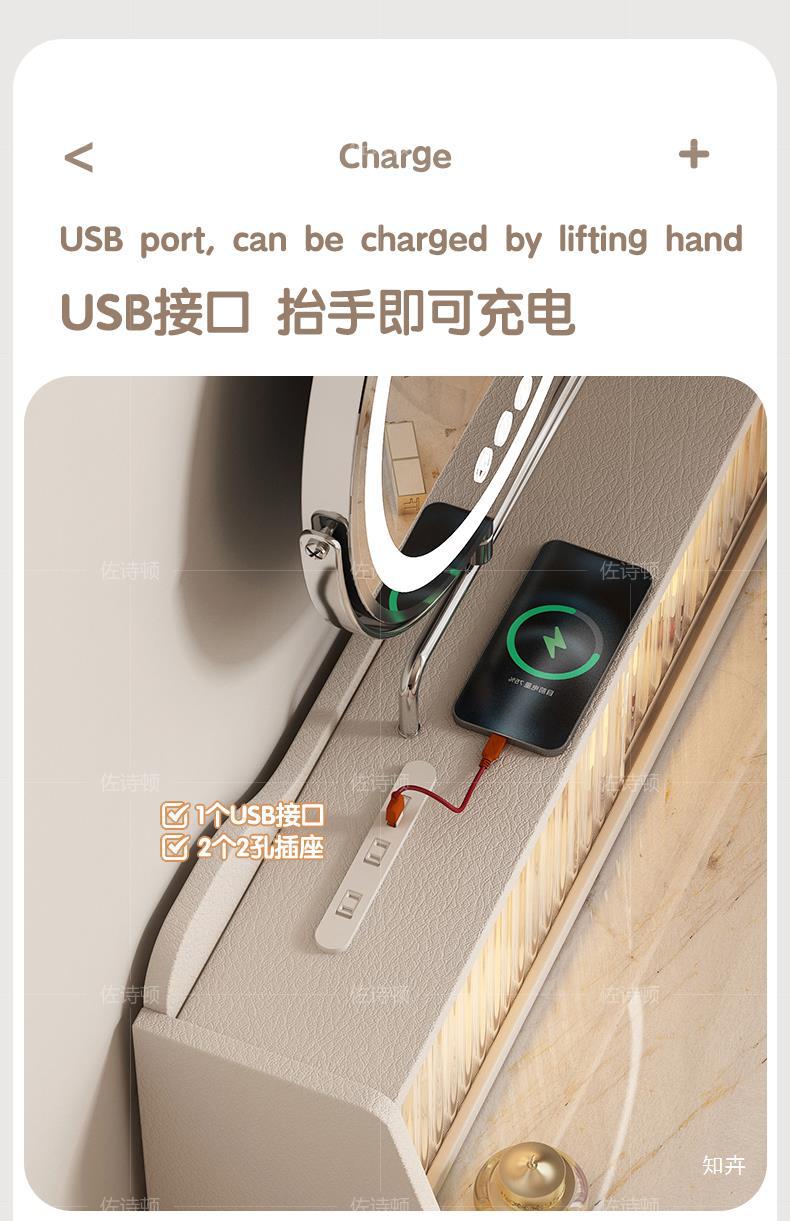 80cm dressing table + lifting makeup stool [slate countertop retractable]