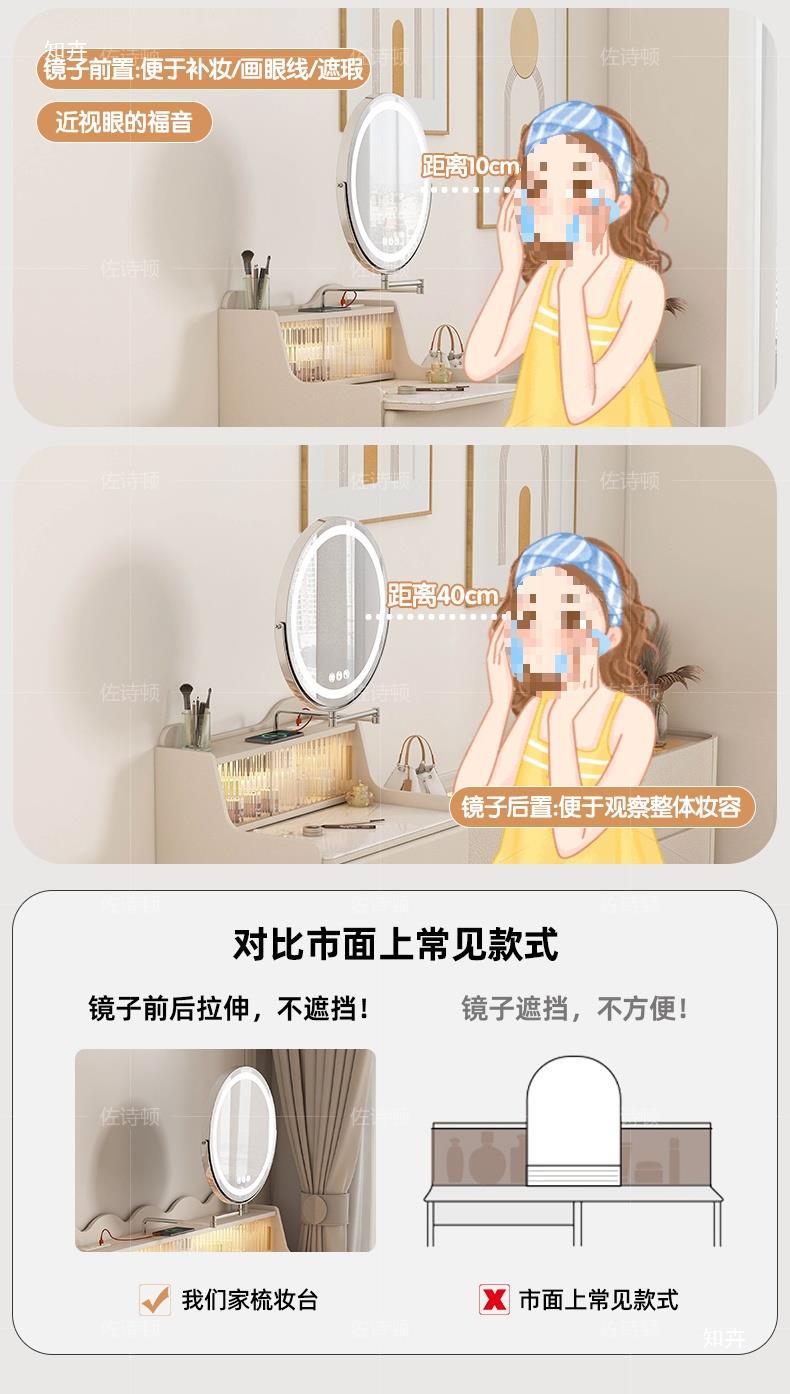 80cm dressing table + rotating makeup mirror + lifting makeup stool [slate table retractable]