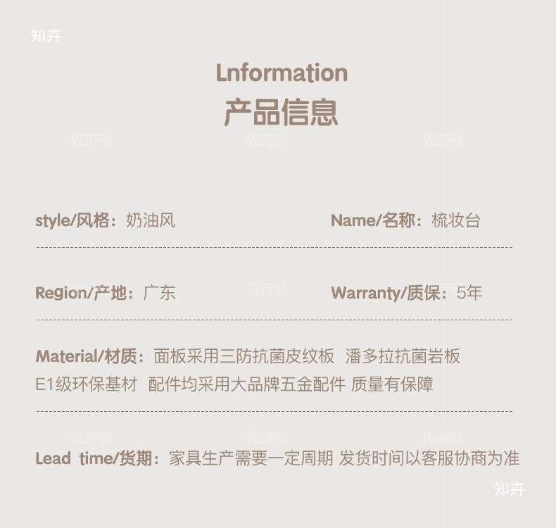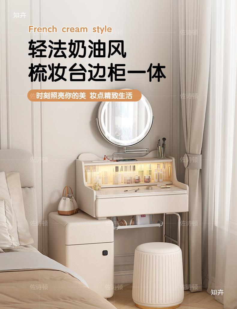 Tocador de una pieza estilo francés, moderno, color crema, con combinación sencilla, nuevo estilo, ligero y lujoso, con cinturón.