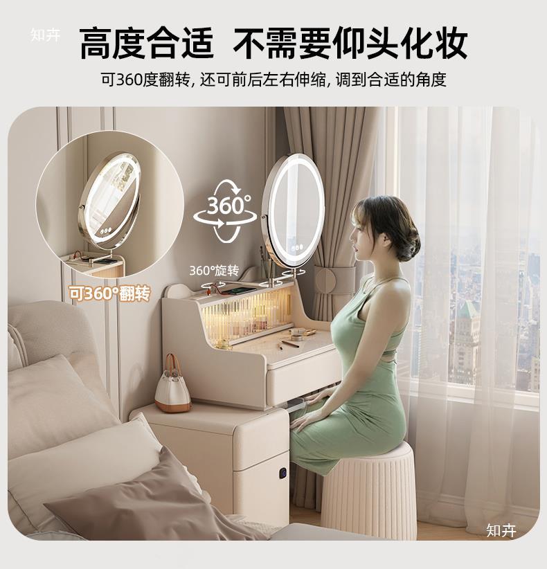 80cm dressing table + fingerprint locking cabinet + storage rack + rotating makeup mirror [slate countertop retractable]
