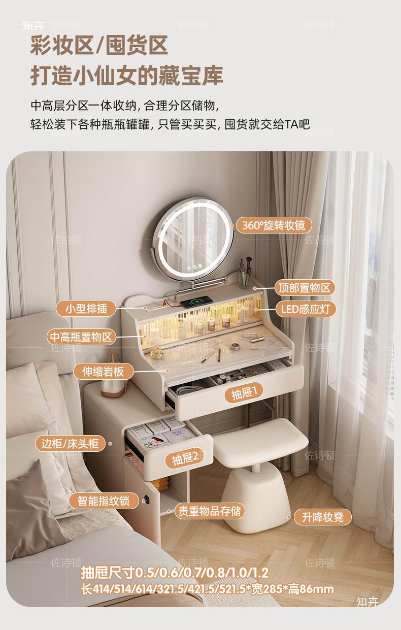 50cm dressing table + fingerprint locking cabinet + storage rack [slate countertop retractable], 60cm dressing...