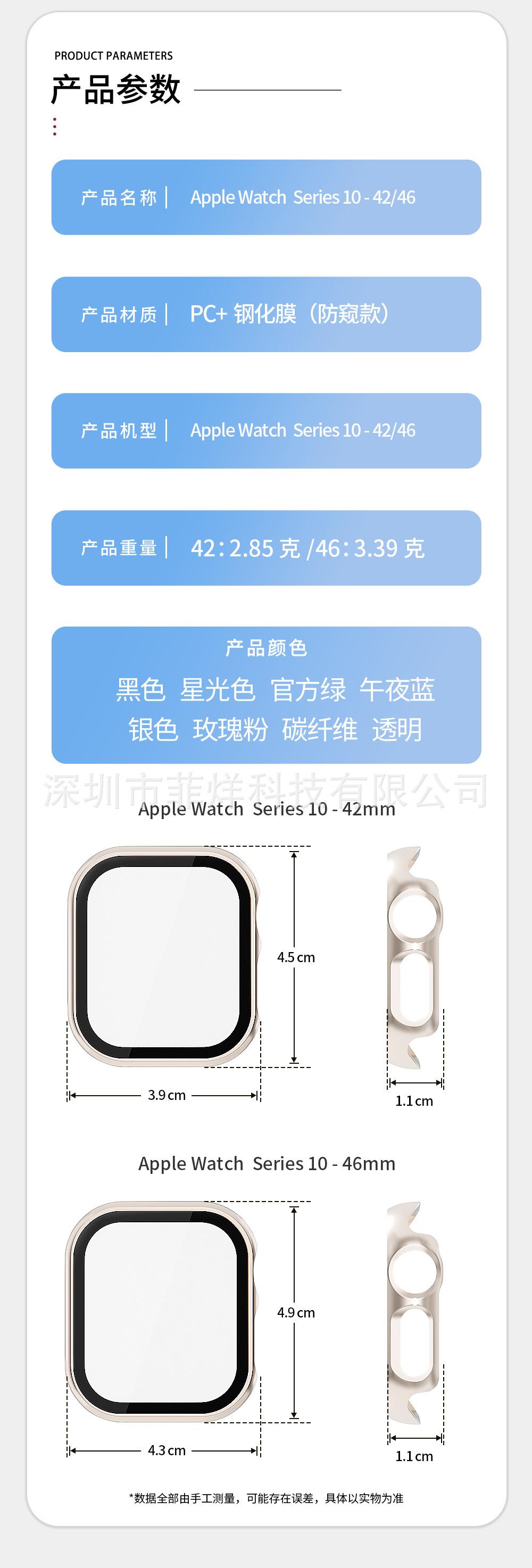 Adecuado para Apple Watchs11 Funda Protectora para Apple Watch iwatch10 Templado Anti-Miradas Funda para Apple Watch