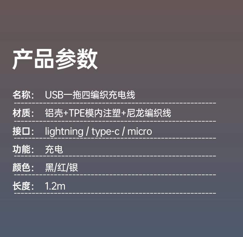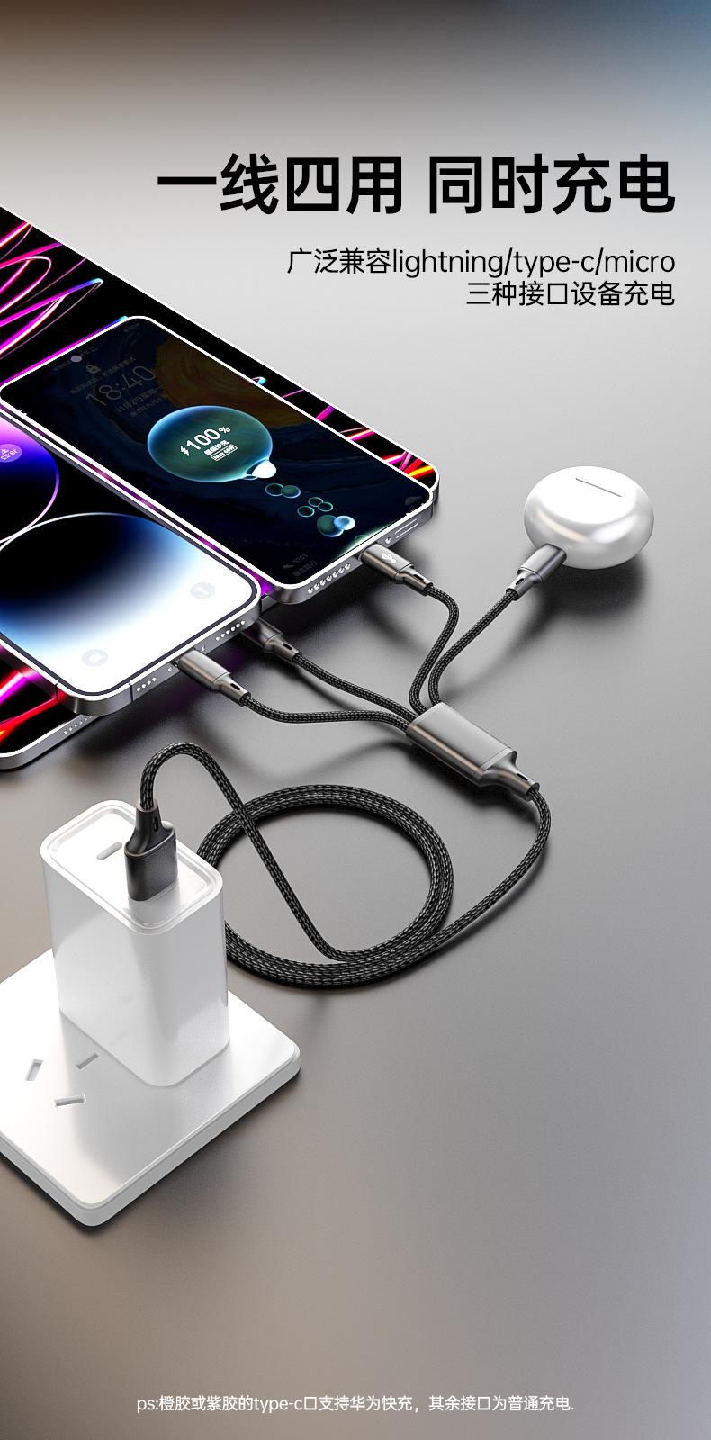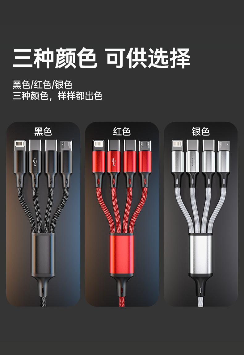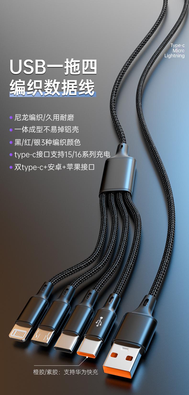 Compra Cable de carga trenzado 6A de uno a cuatro adecuado para cable de datos de iPhone 16, cable de carga rápida Huawei Type-C, carga USB al por mayor en Joom.pro