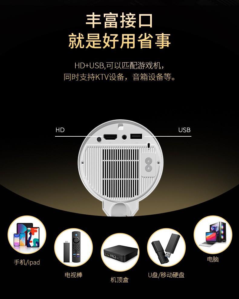 Proyector Doméstico Popular de Comercio Exterior para Proyección de Pared de Dormitorio, Proyección Directa de Pantalla Compartida de Teléfono Móvil y Computadora Ultra Clara, Mini Proyector Inteligente