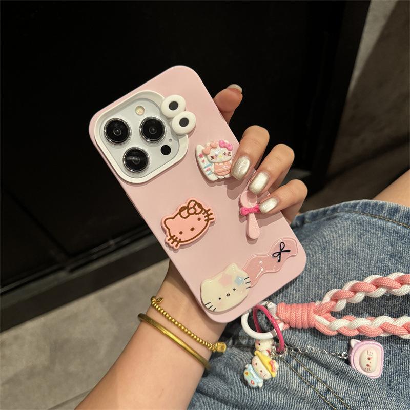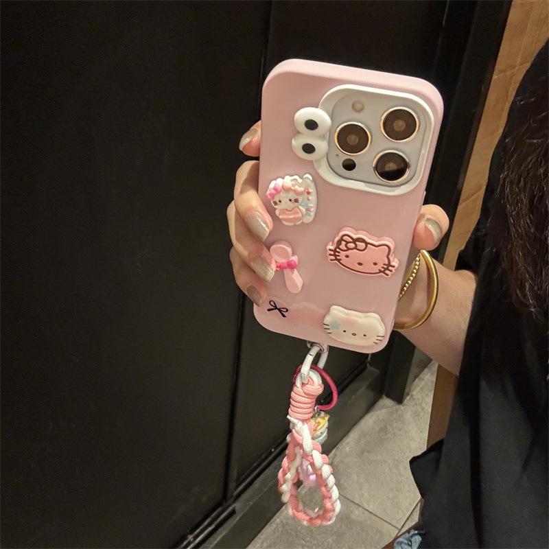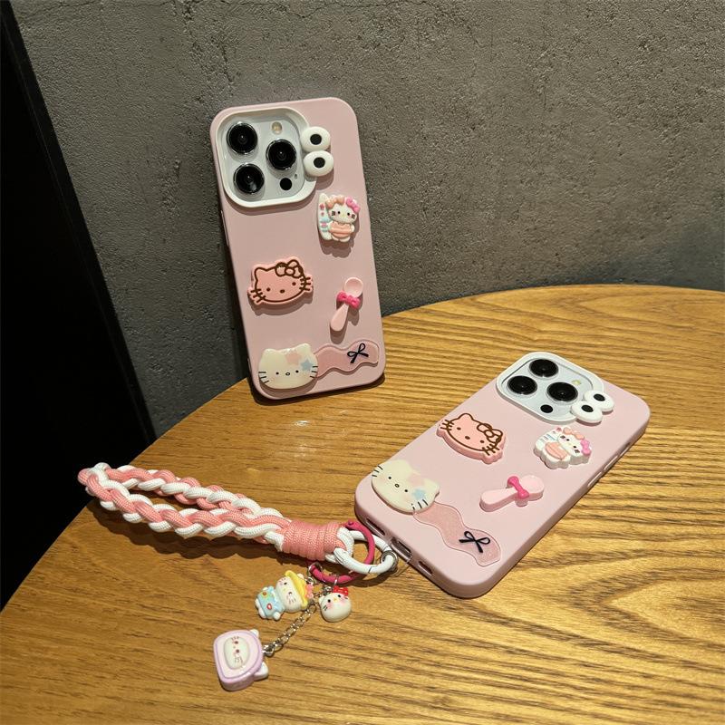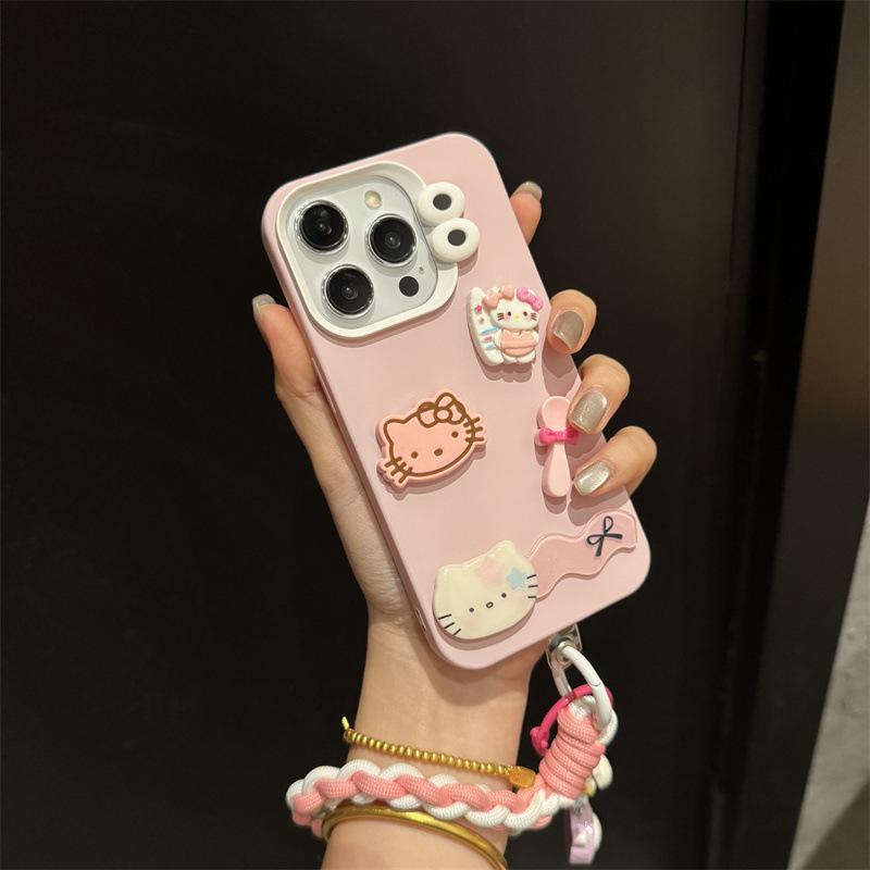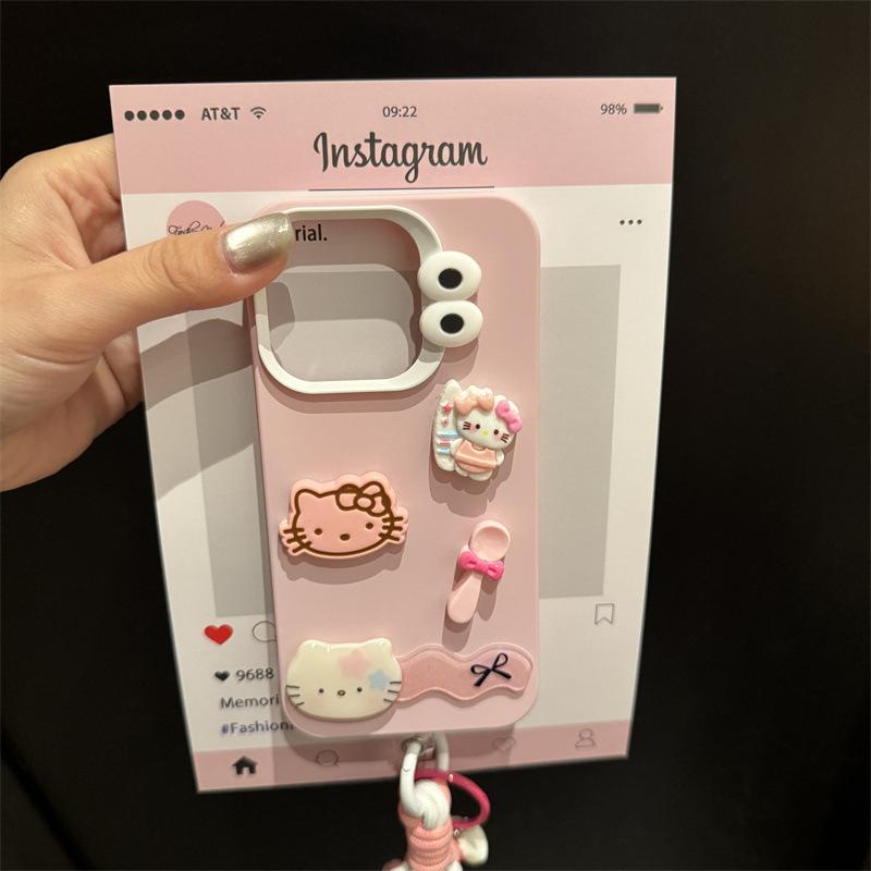 Funda de teléfono kt cat tridimensional de dibujos animados para iPhone15 Apple 16promax cuerda portátil 14/13/12 mujer 11