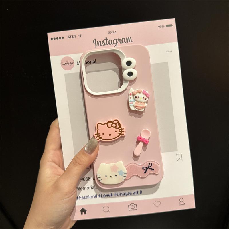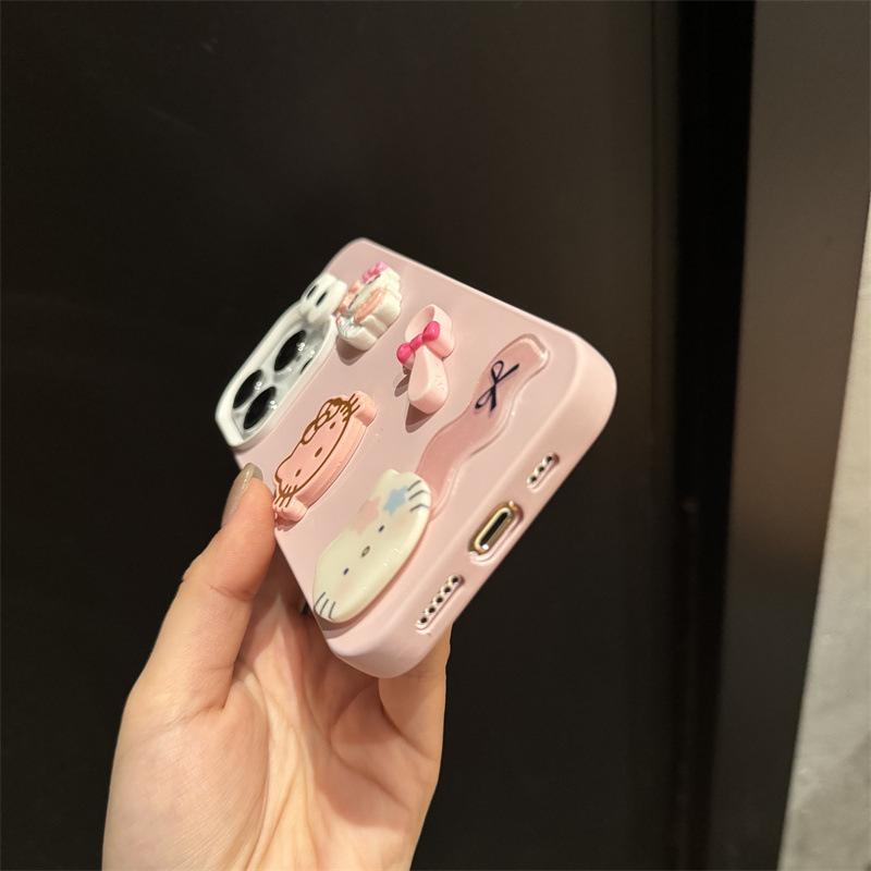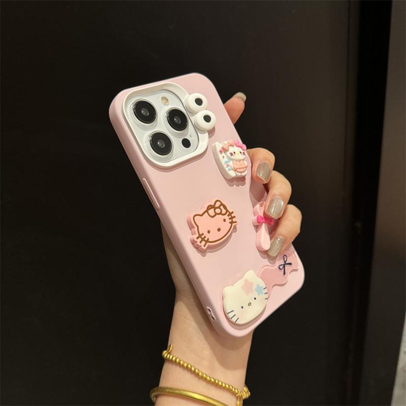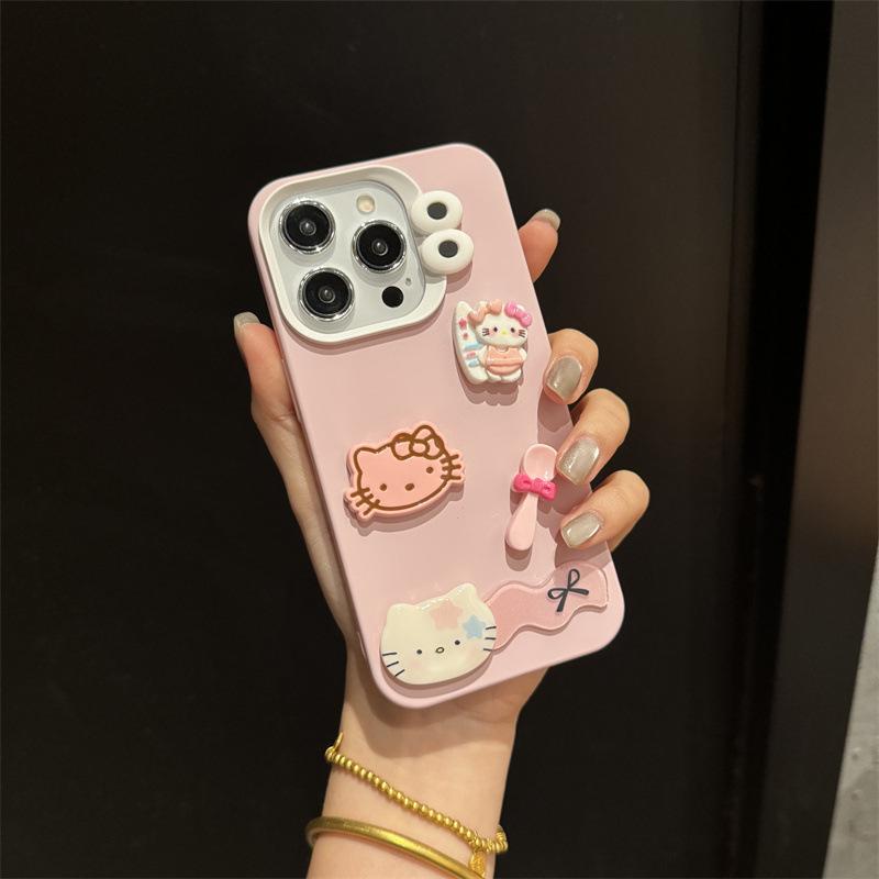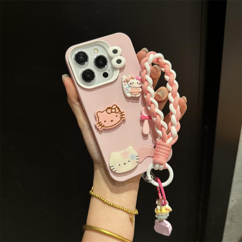 Funda de teléfono kt cat tridimensional de dibujos animados para iPhone15 Apple 16promax cuerda portátil 14/13/12 mujer 11