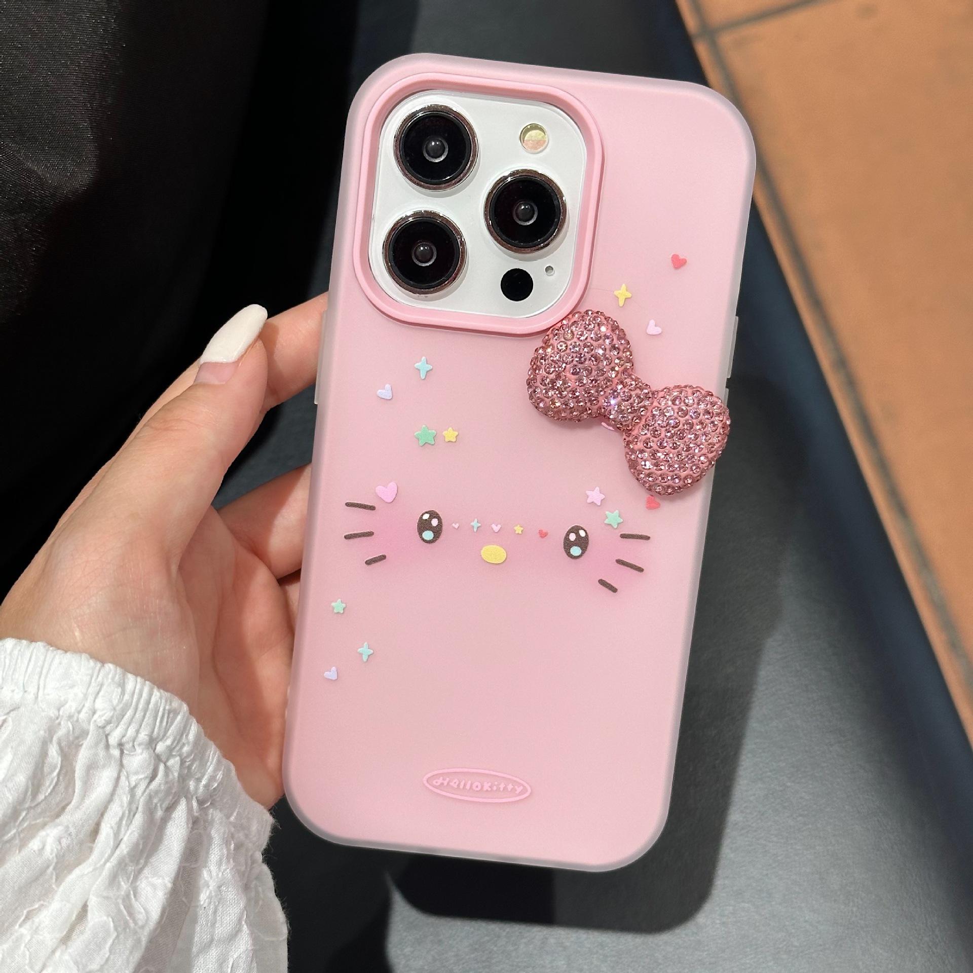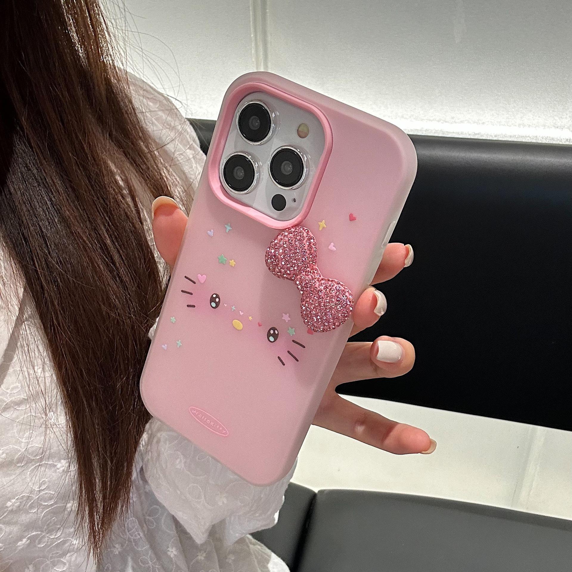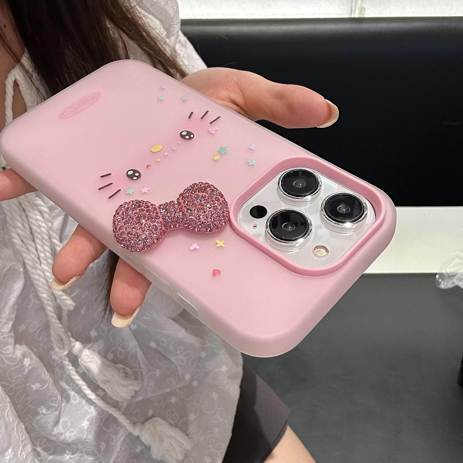 Para Apple 16promax Funda para Teléfono Móvil iPhone15 2 en 1 KT Cat 14 Lazo 13 Lindo Portátil 12