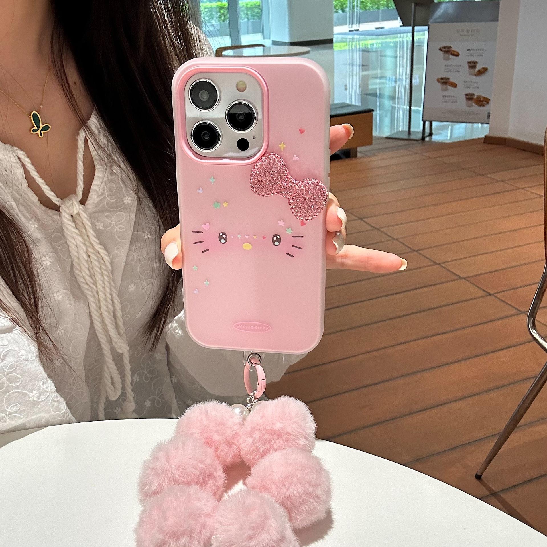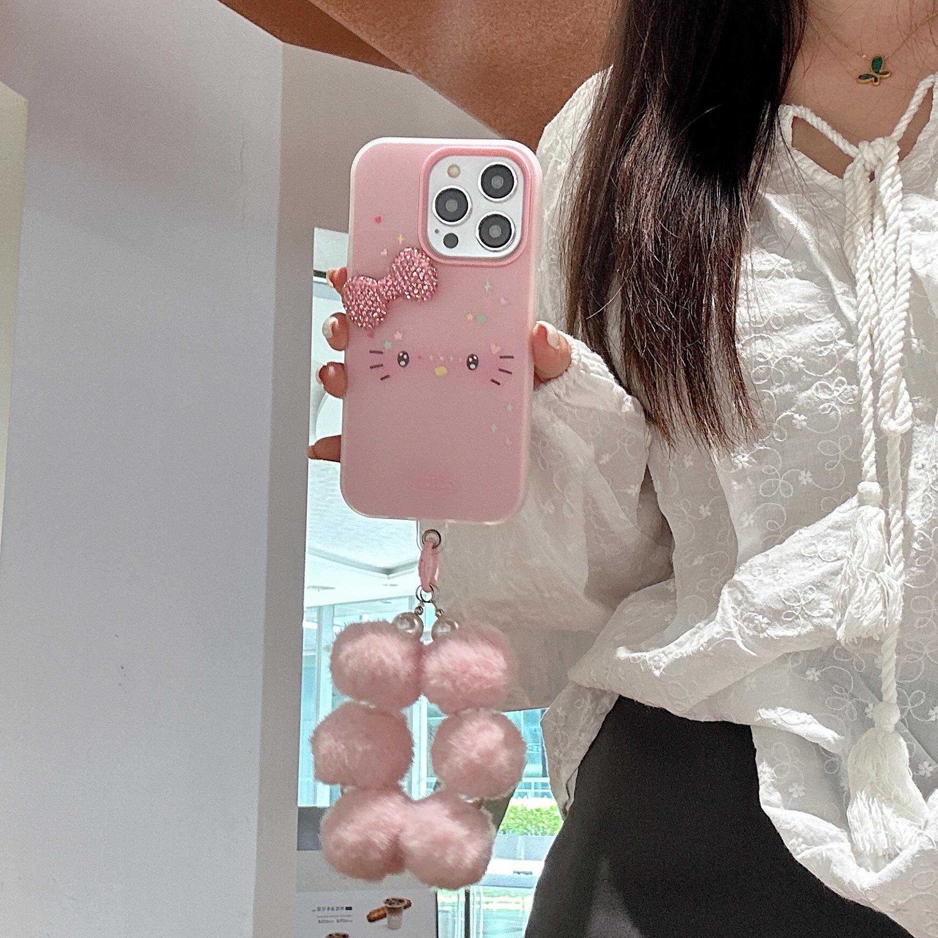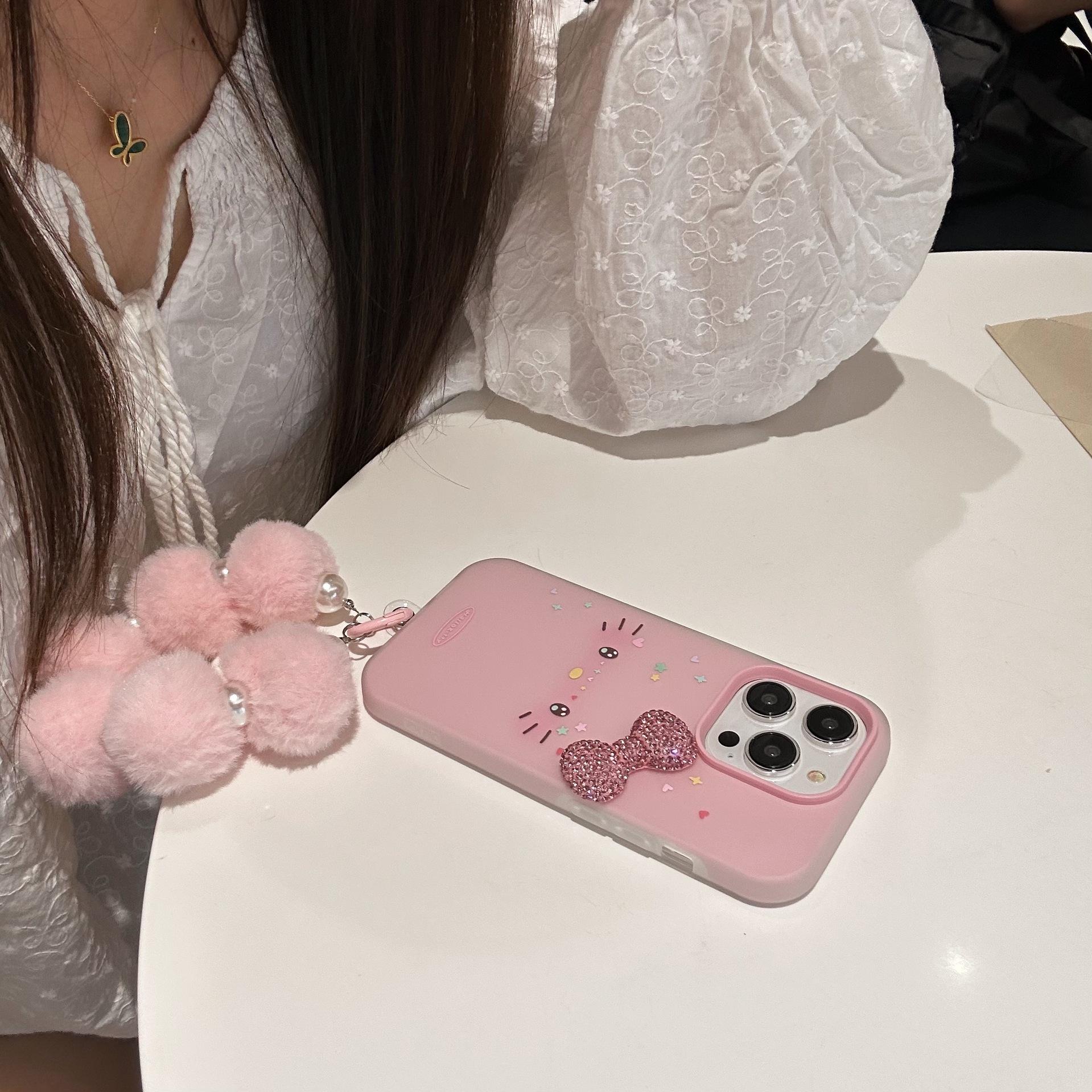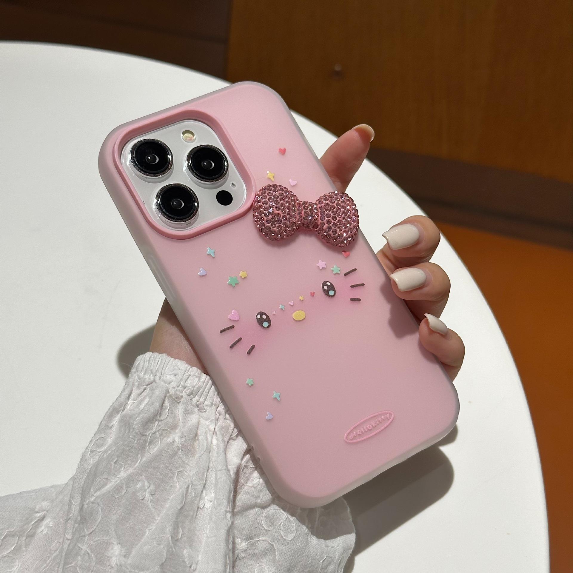 Para Apple 16promax Funda para Teléfono Móvil iPhone15 2 en 1 KT Cat 14 Lazo 13 Lindo Portátil 12