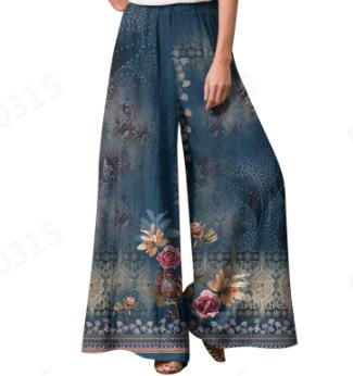 Europa y Estados Unidos verano transfronterizo nuevo pantalones de pierna ancha para mujer cinturón elástico pierna ancha cintura alta largos culottes estampados