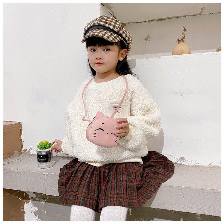 Bolsos para niños, bolso de hombro informal de moda, mini monedero, nuevo bolso cruzado con gatito de dibujos animados 2024