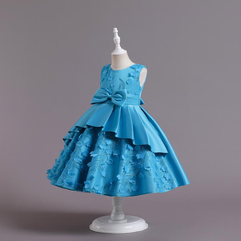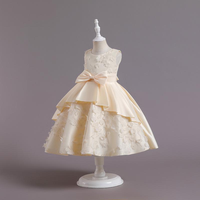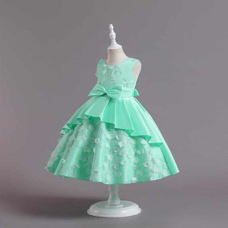 Vestido de princesa para niñas europeas y americanas, vestido de satén, minifalda infantil, vestido de malla para niñas, disfraz de pasarela para niñas de flores