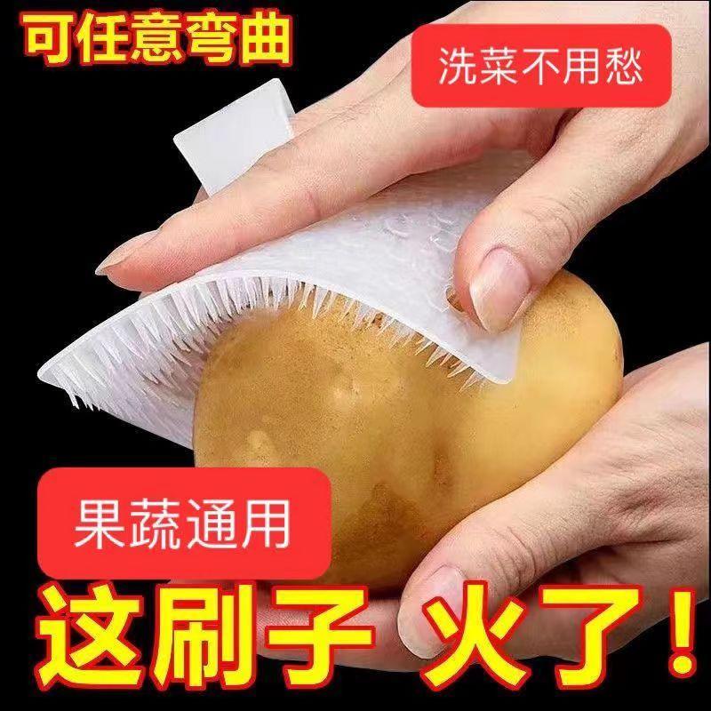 Cepillo para lavar verduras, frutas y verduras, cepillo de limpieza para el hogar, trapo de alambre de acero, cepillo de silicona de pelo suave, cepillo para verduras de grado alimenticio