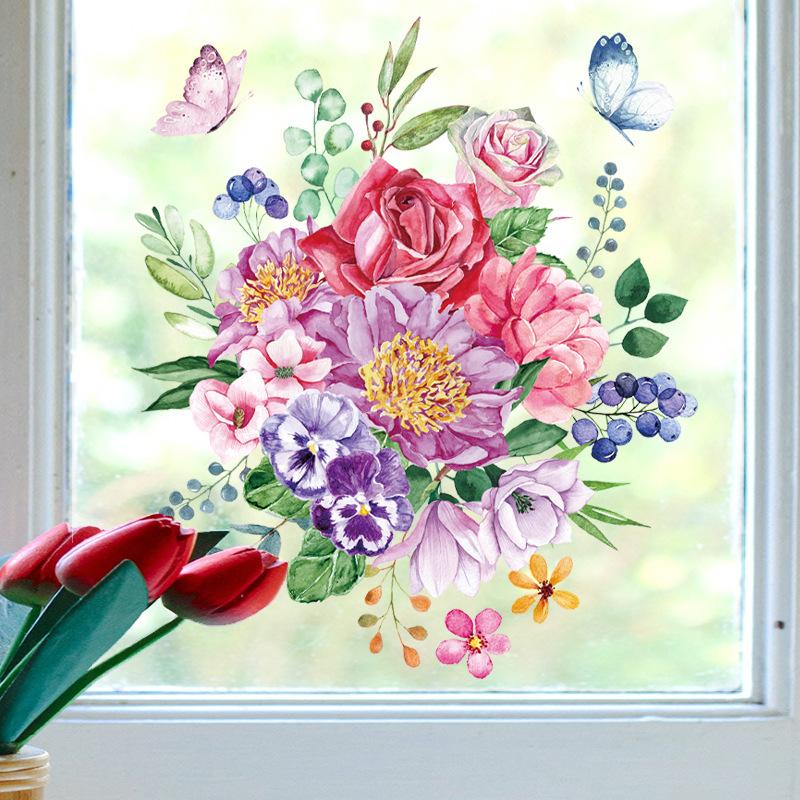 Decoración de Flores Frescas Adhesivo para Inodoro Baño Inodoro Cubierta de Inodoro Adhesivo Decorativo Impermeable Removible Adhesivo de Pared