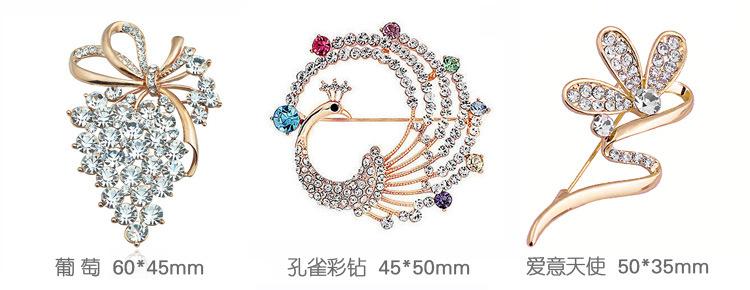 A137 silver grape brooch, A136 Golden Grape Brooch, Colorful, 71 Brooch, A11 tango bouquet, A14 rose crystal b...