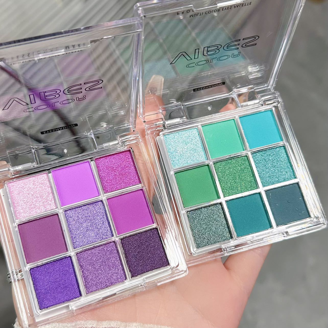 Paleta de sombras de ojos de nueve colores INS transfronterizas, perladas, brillo fino, metal oscuro, punk, maquillaje ahumado, gris, negro, sombra de ojos, maquillaje