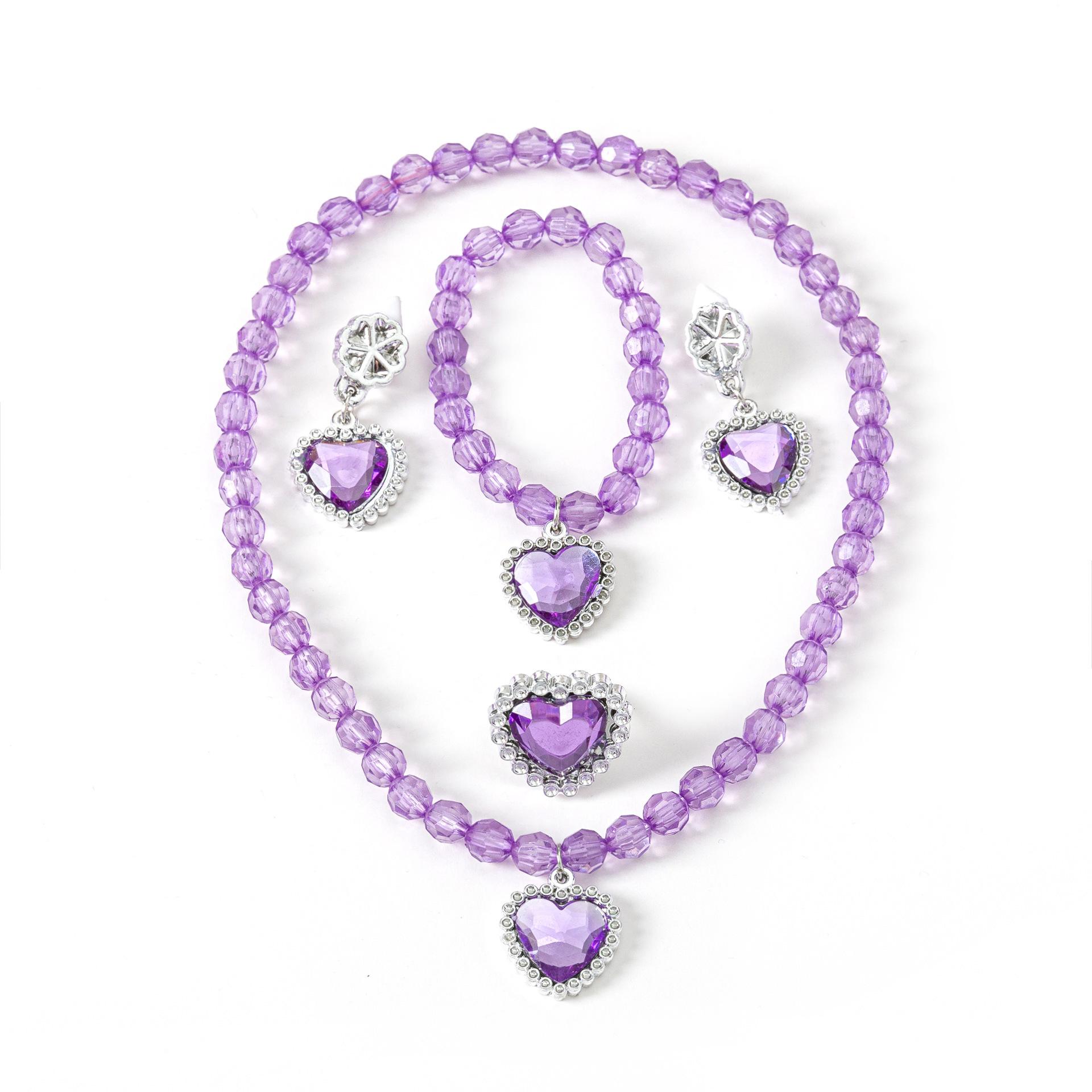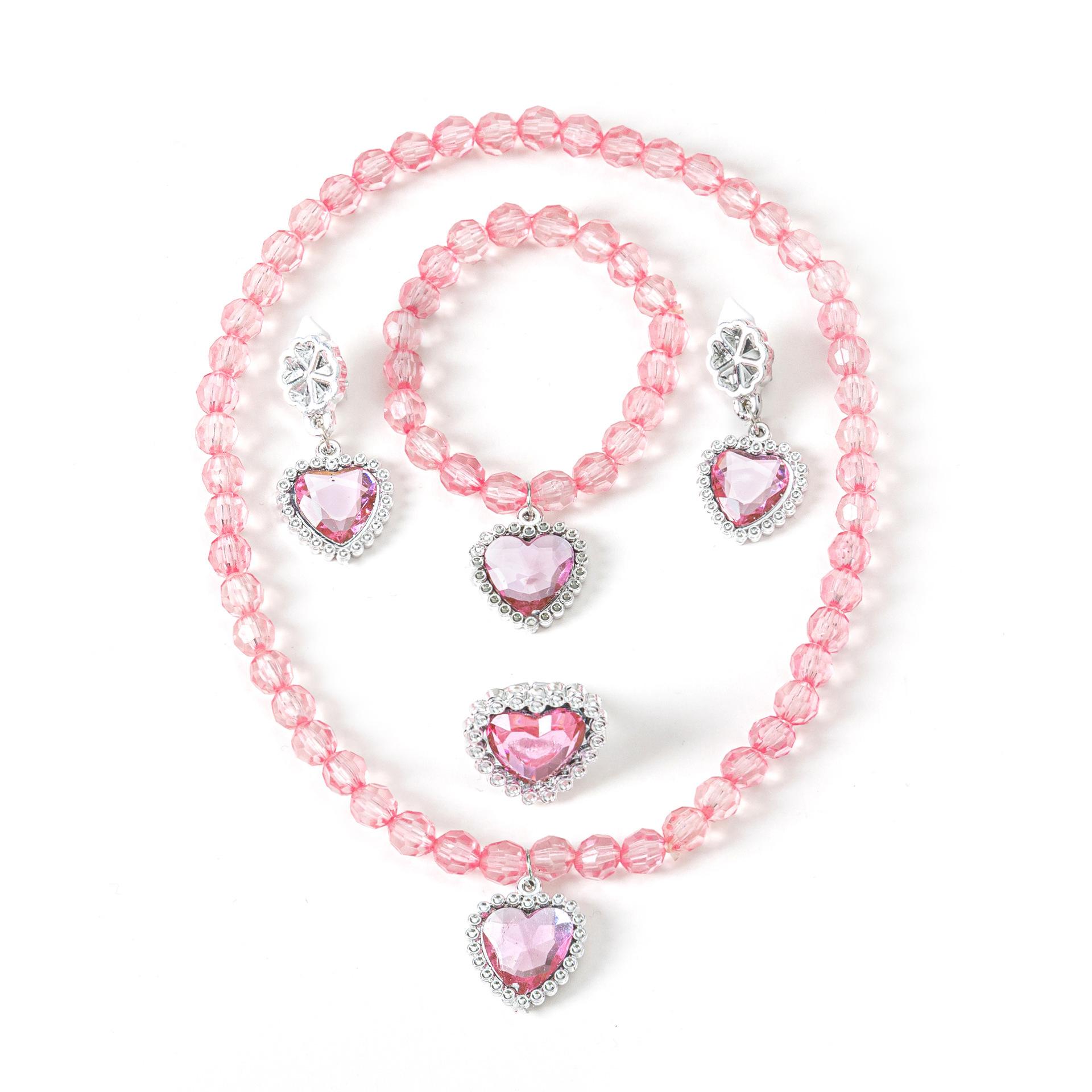 Collar con cadena de bolas de dibujos animados para niños, pendientes de corazón de melocotón, pulsera para niña, anillo de diamantes, venta al por mayor