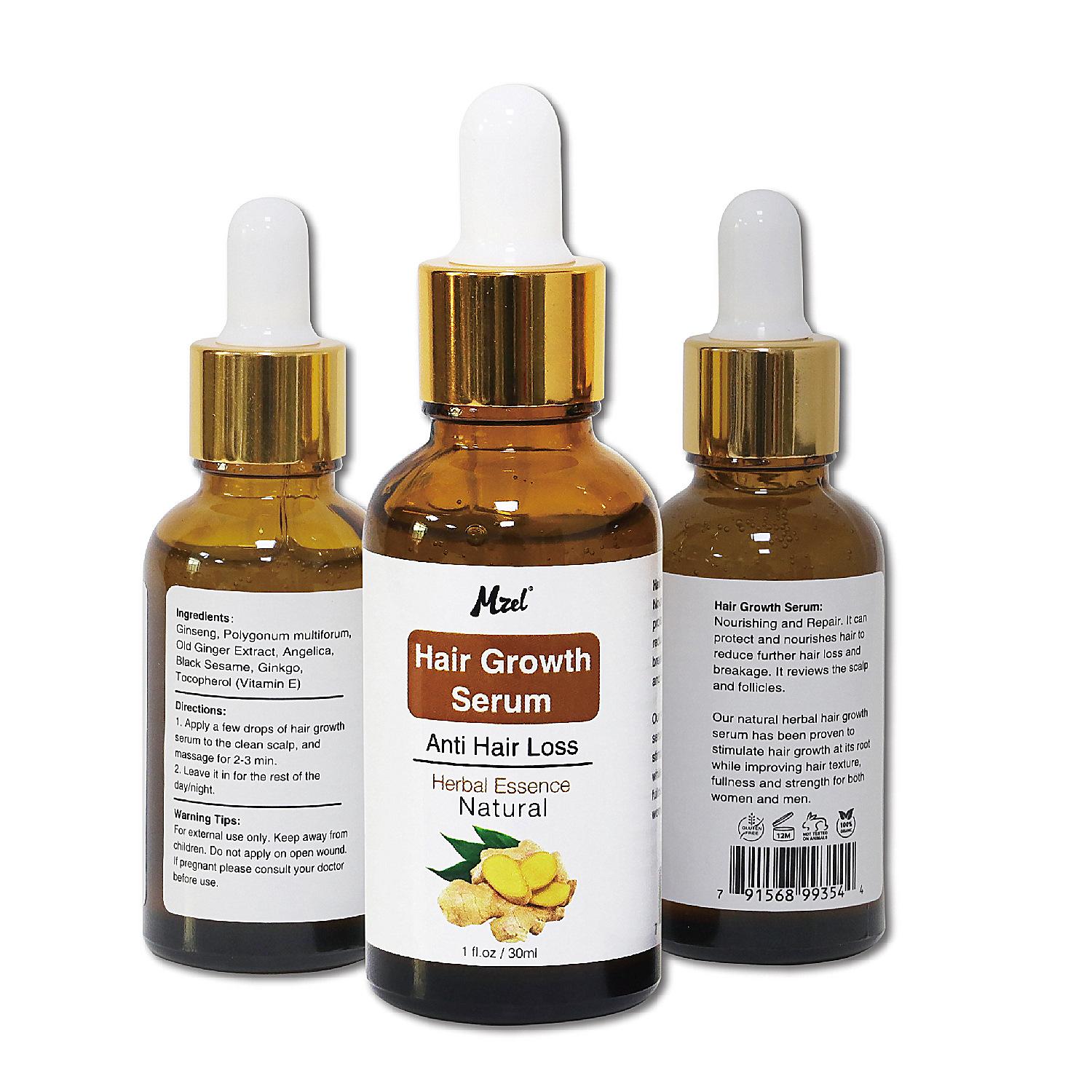 Mzel - Esencia para el crecimiento del cabello con jengibre transfronterizo, solución nutritiva para el cuidado del cabello, aceite esencial para el cuidado del cabello, cabello denso