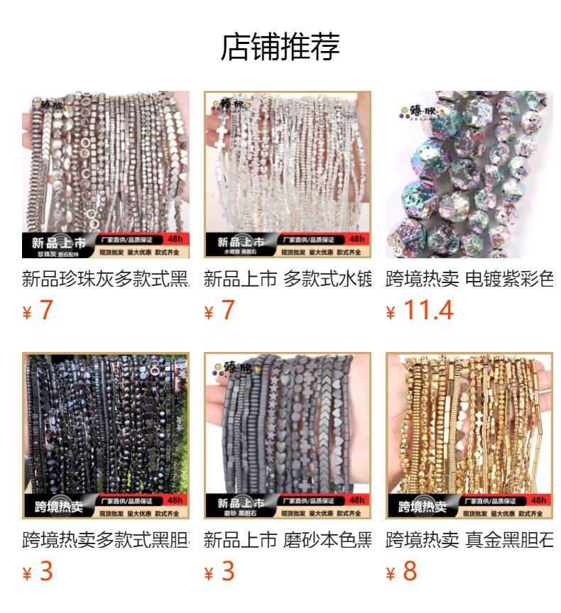 Cuentas sueltas de mineral de hierro de 2-10 mm con forma de gota de agua galvanizada, cuentas de piedra biliar negra, accesorios para pulseras, cuentas redondas al por mayor