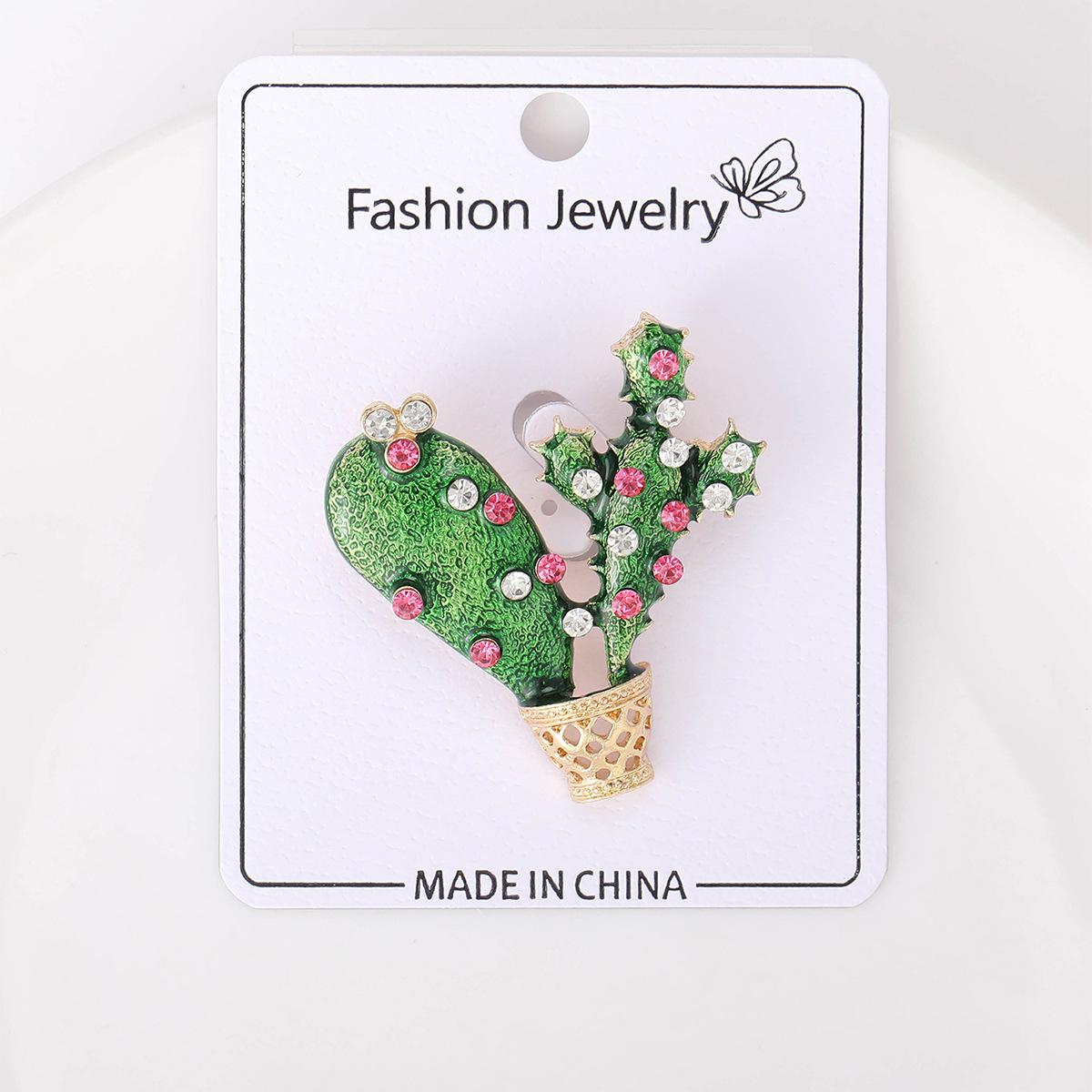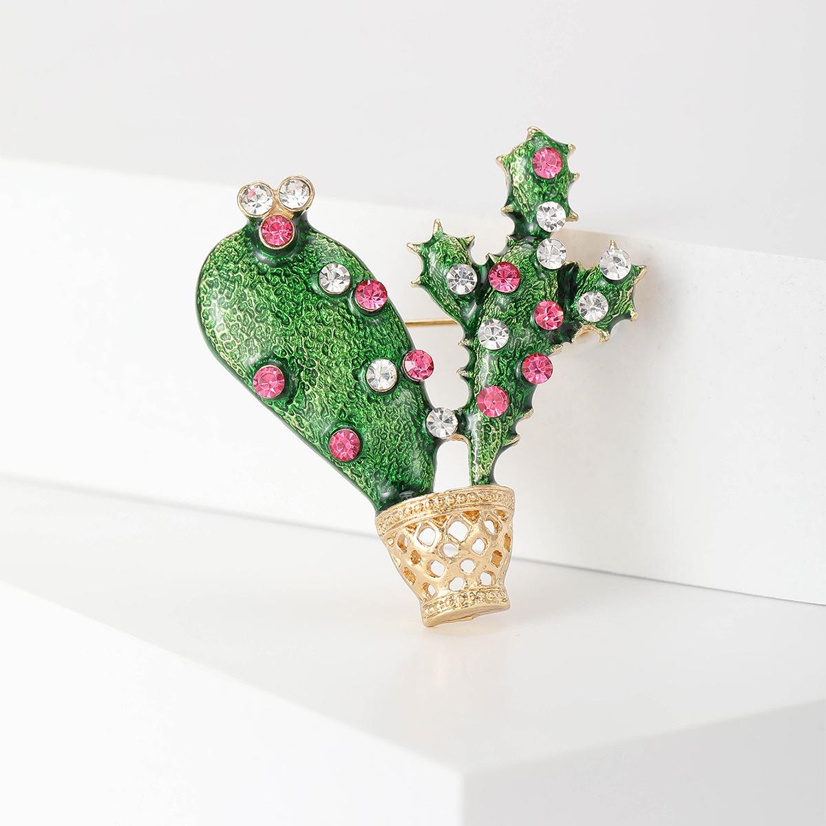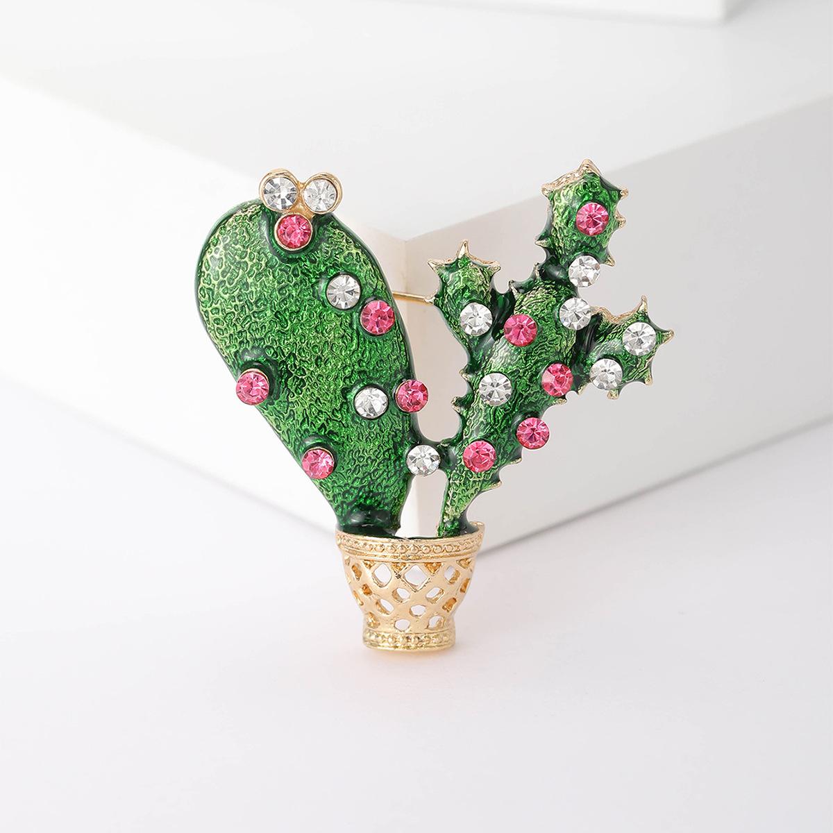 Broche de cactus de moda creativa coreana de aleación esmaltada con gota de aceite, joyería de la serie de plantas, pines para ropa de mujer al por mayor