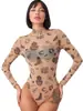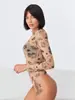 Mono ajustado de manga larga con cuello redondo estampado y perspectiva sexy para mujer de verano transfronterizo europeo y americano 2024