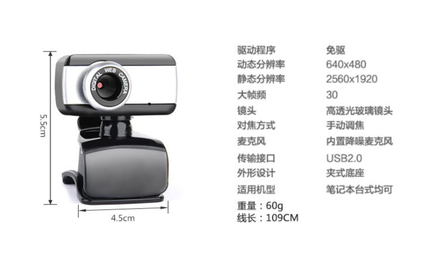 Cámara USB con clip HD 517, cabezal de video para computadora sin unidad, micrófono incorporado