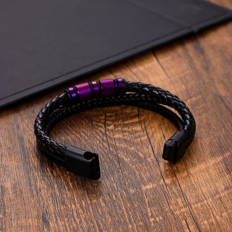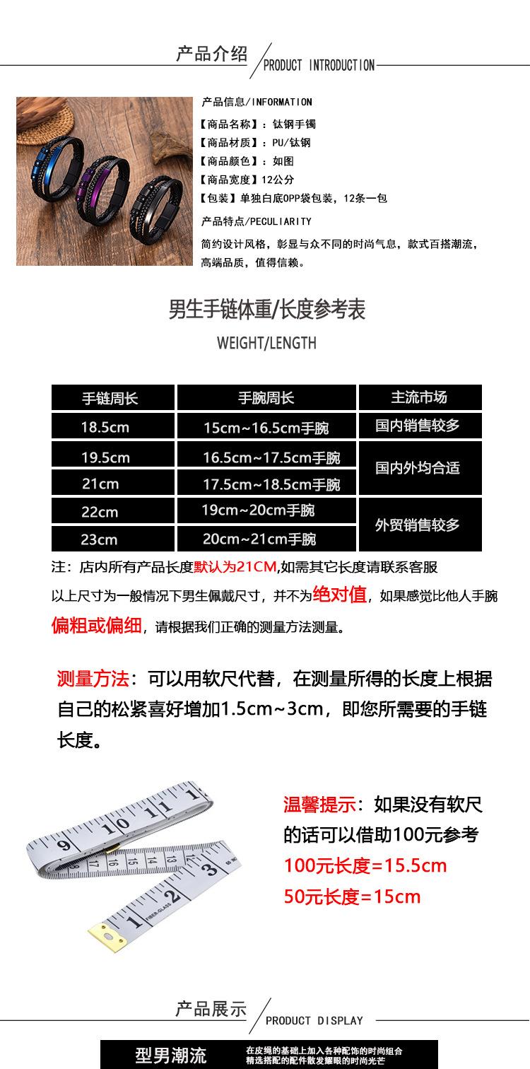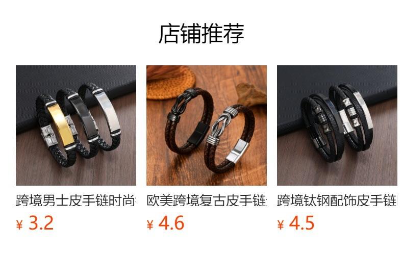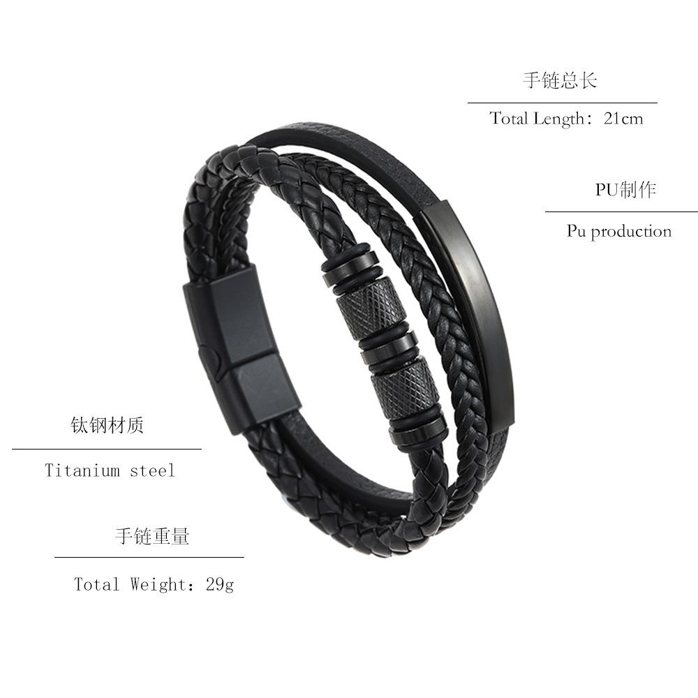 Pulsera de Acero Inoxidable con Curva Grabada Transfronteriza, Cuero PU Multicapa, Acero Titanio, Joyería para Hombre, Pulsera Tejida, Pulsera Personalizada