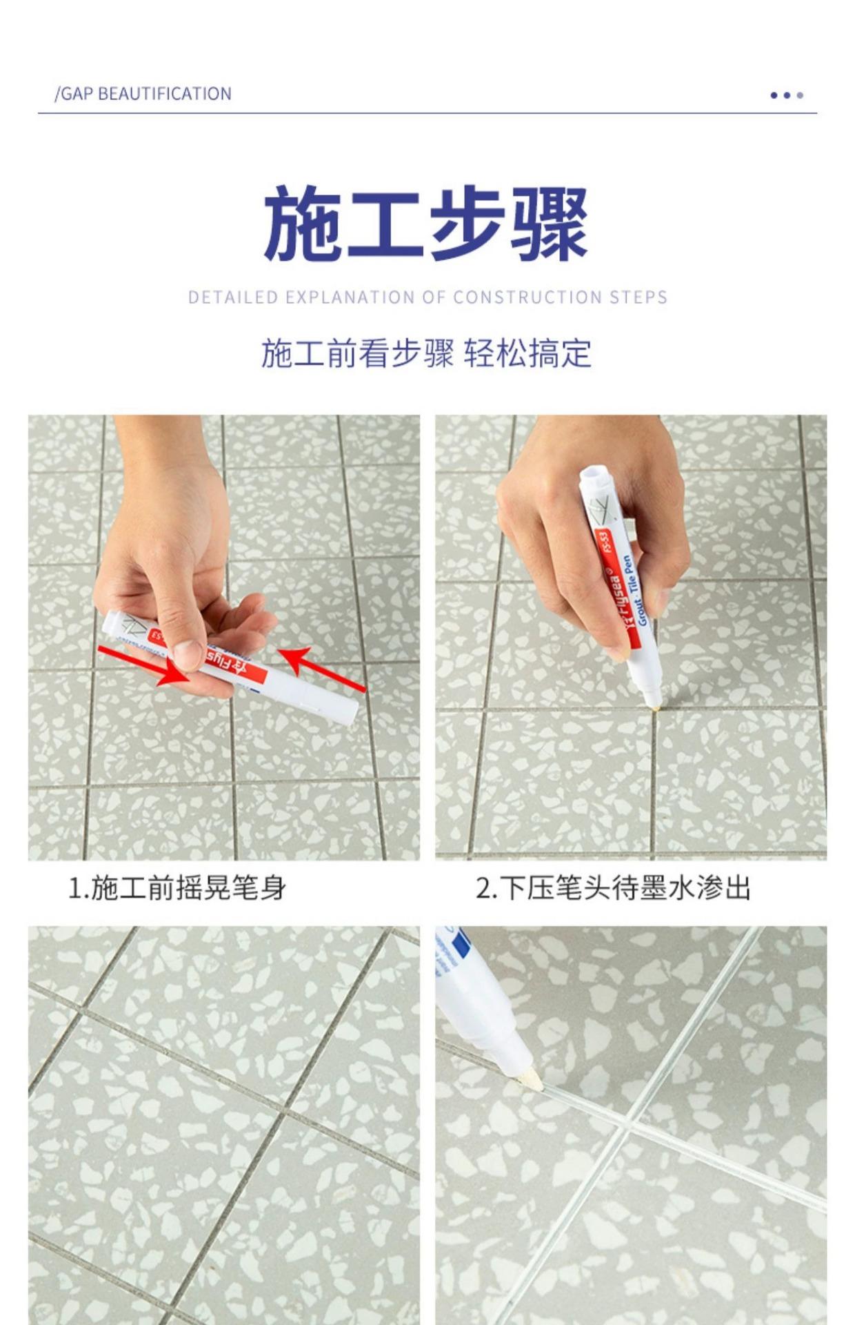 Bolígrafo de costura para baldosas de piso, agente de costura especial, relleno de juntas, herramienta de construcción de huecos que cambia de color, agente de unión de pegamento impermeable de secado rápido