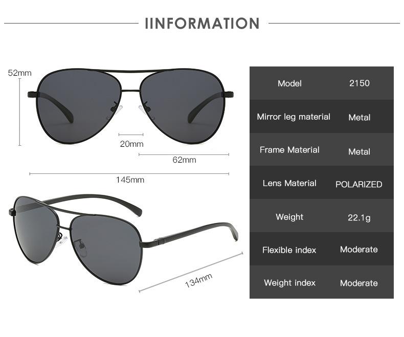 Nuevas gafas de sol polarizadas de aluminio y magnesio de moda 2150 con patas de resorte para conducir, gafas de sol tipo rana, gafas de sol para hombre