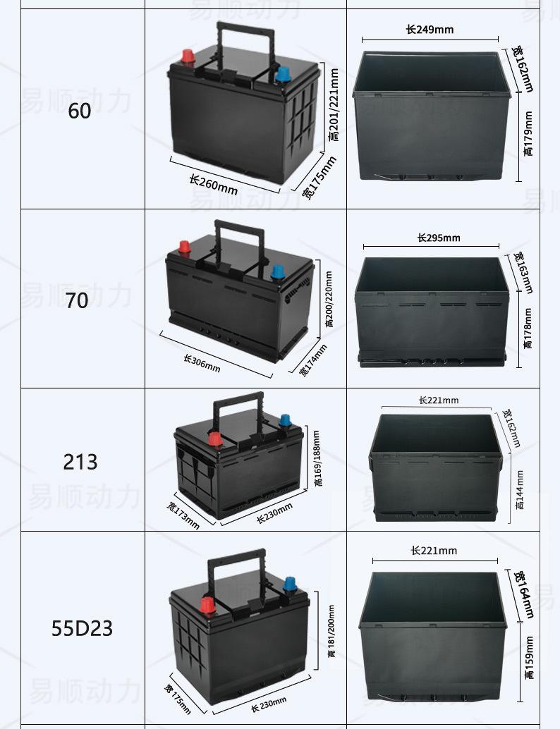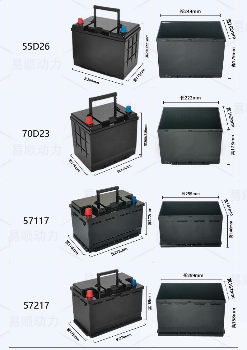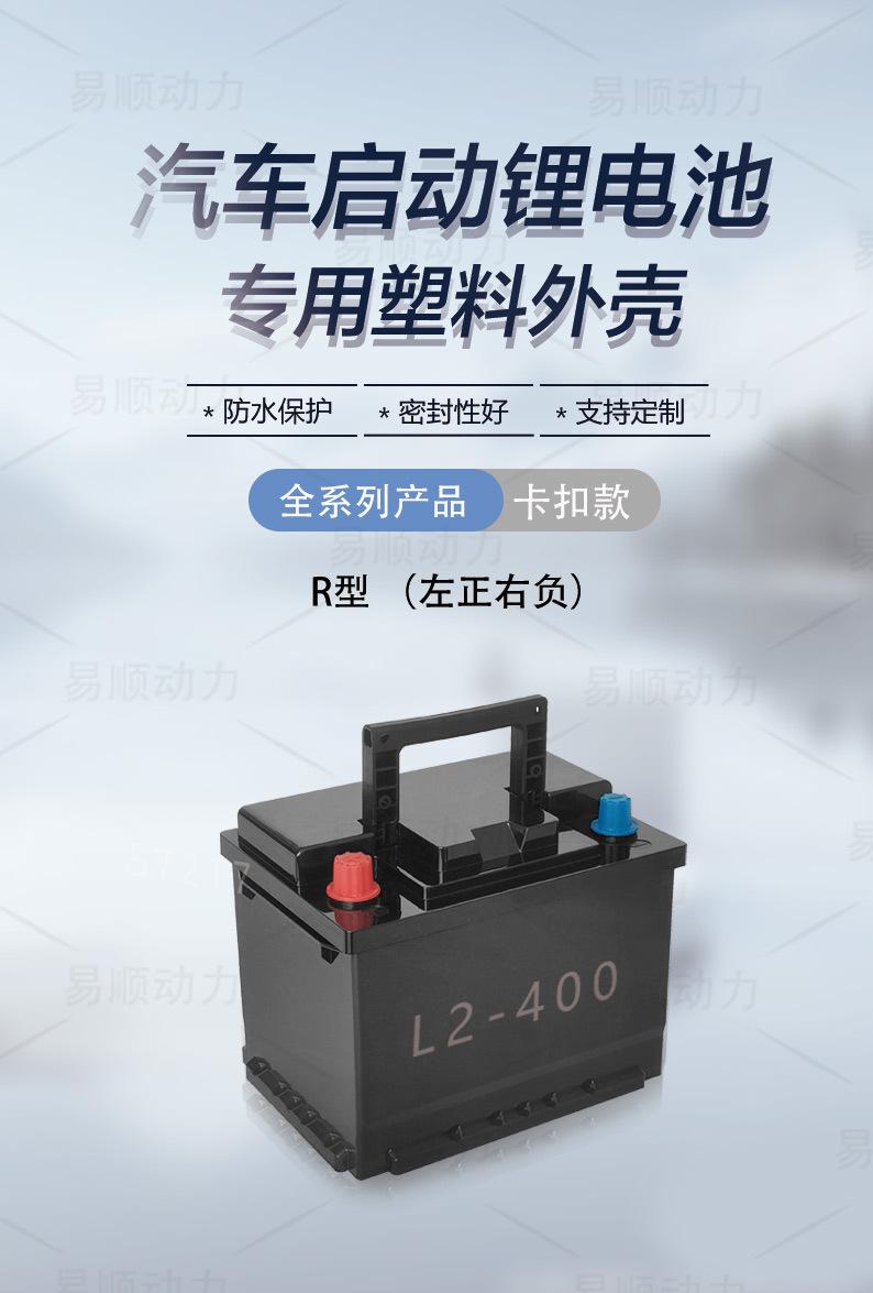 Gama completa de carcasa de plástico para batería de litio de arranque de coche, nueva hebilla, positivo izquierdo, negativo derecho, tipo R